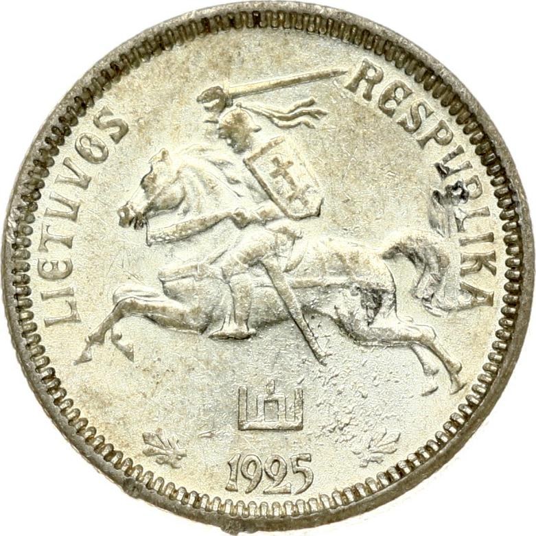 Lithuania 1 Litas 1925 Obverse: National arms. Reverse: Value above oak leaves. Edge Description: Milled. Silver. Damaged coin. KM 76