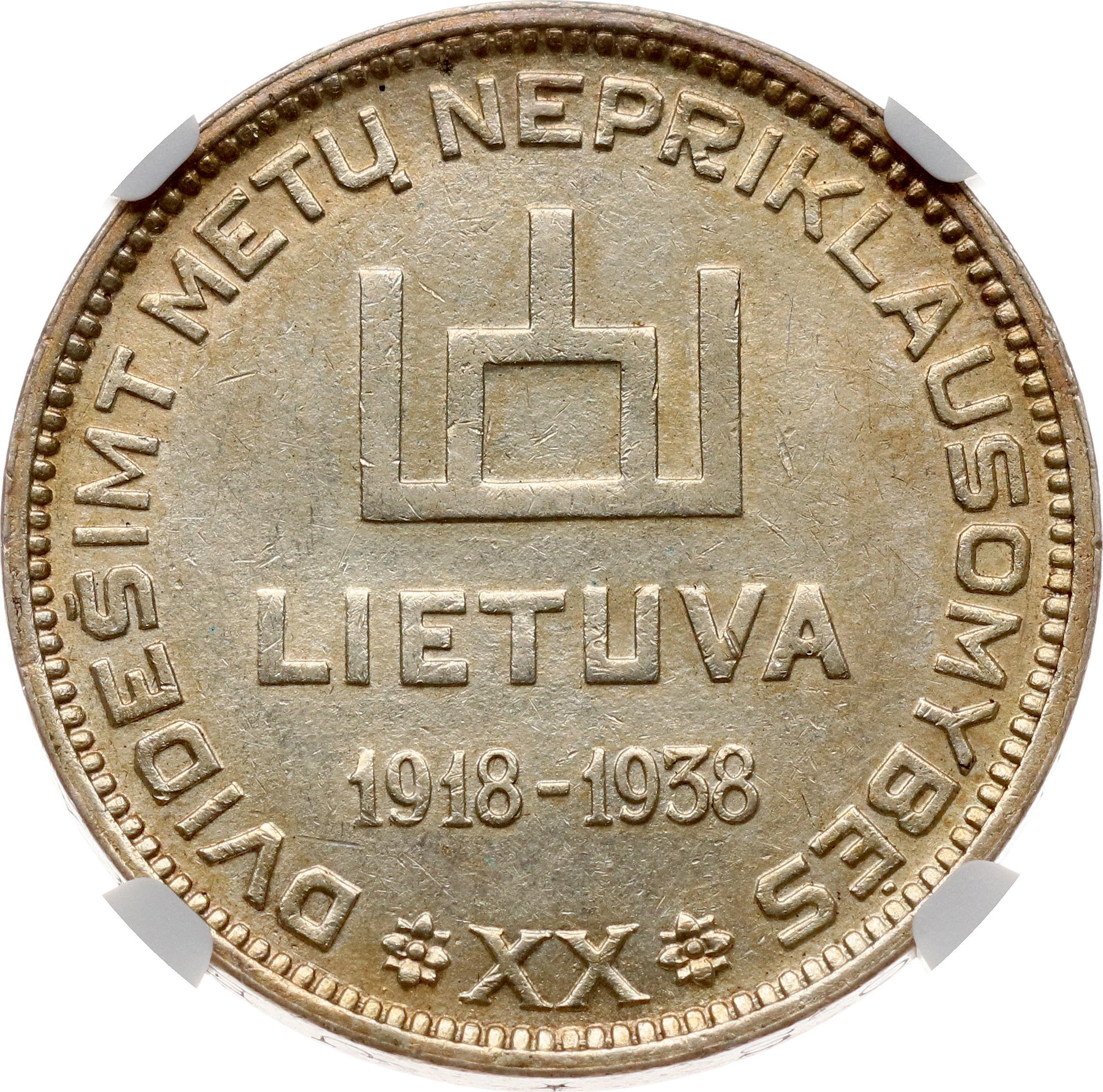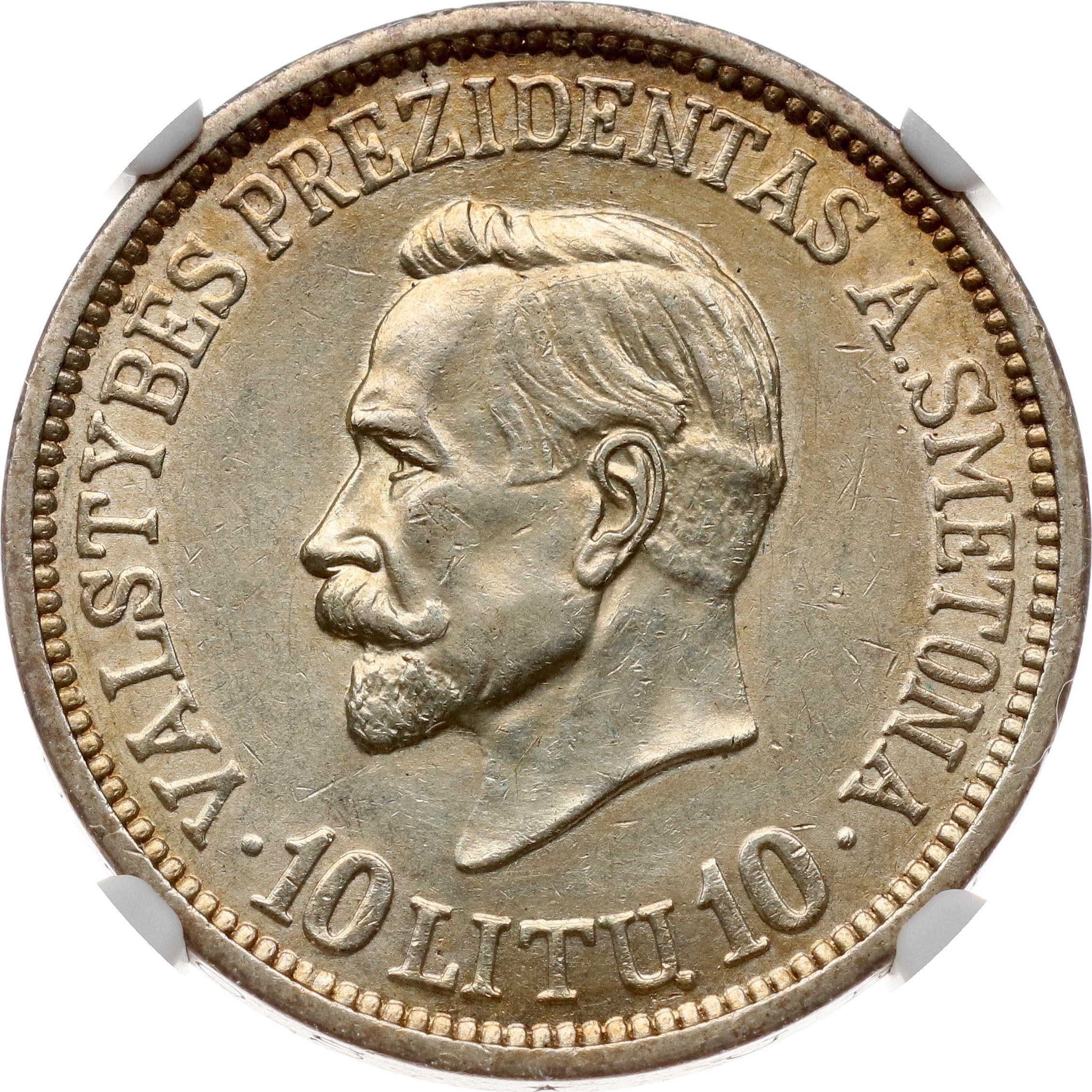Lithuania. 10 Litu 1938 Smetona - 20th Anniversary of Republic. Silver. KM 84. NGC MS 61.
