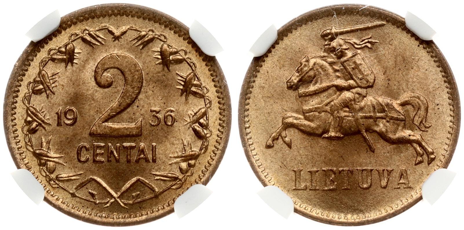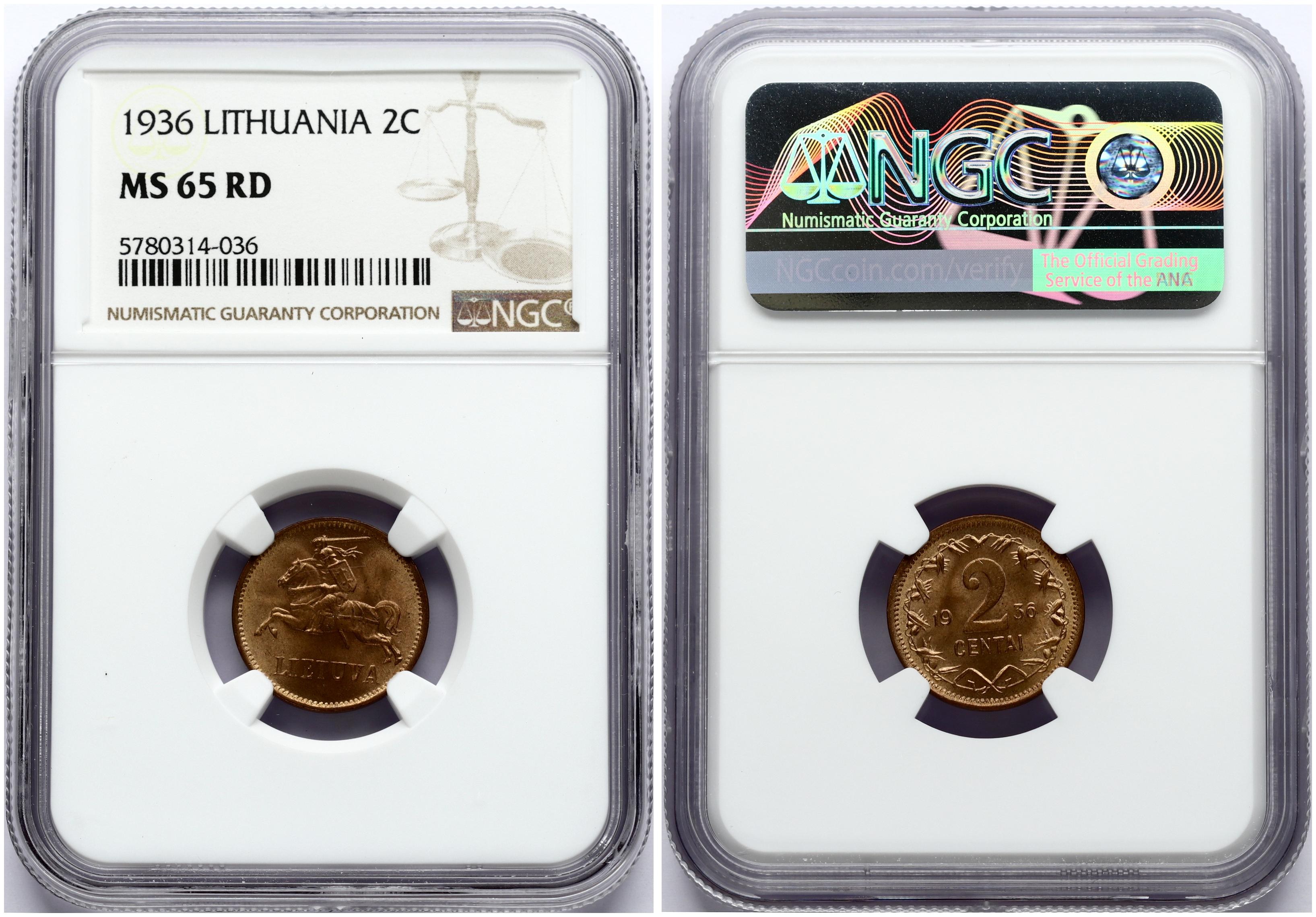 Lithuania 2 Centai 1936 NGC MS 65 RD