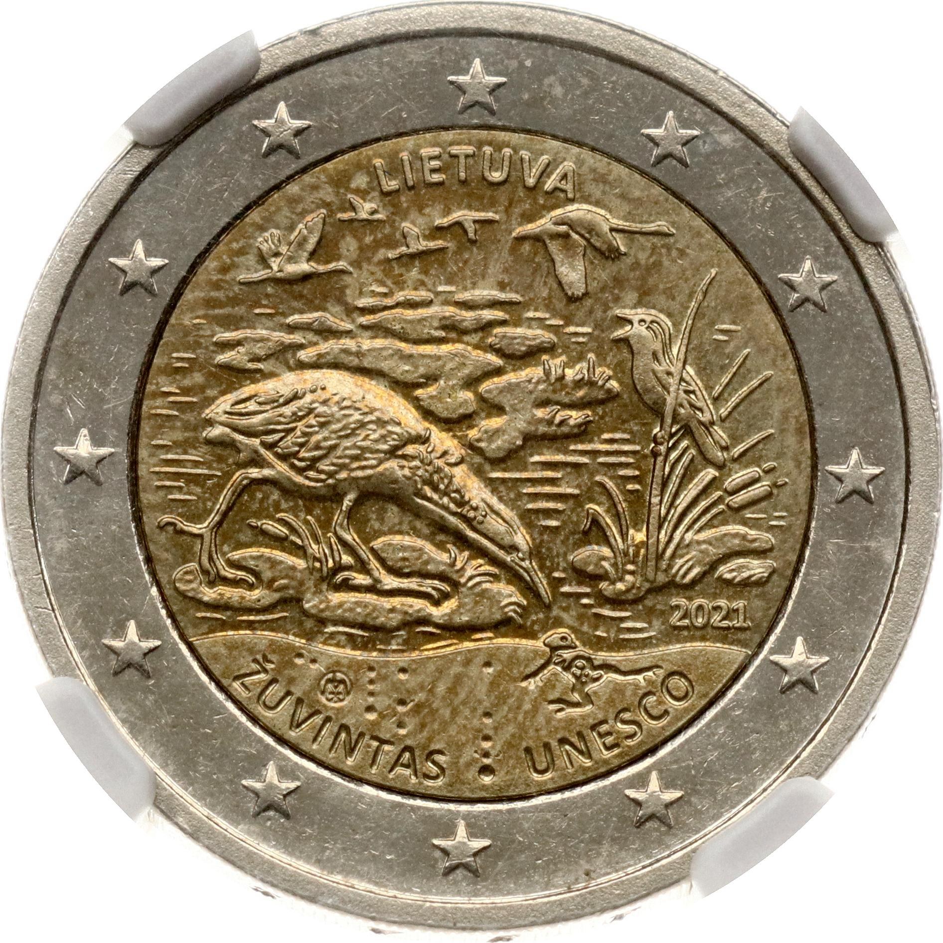 Lithuania 2 Euro 2021 LMK Žuvintas Biosphere Reserve NGC AU 58 Latvian Edge Lettering Error