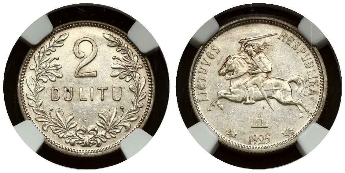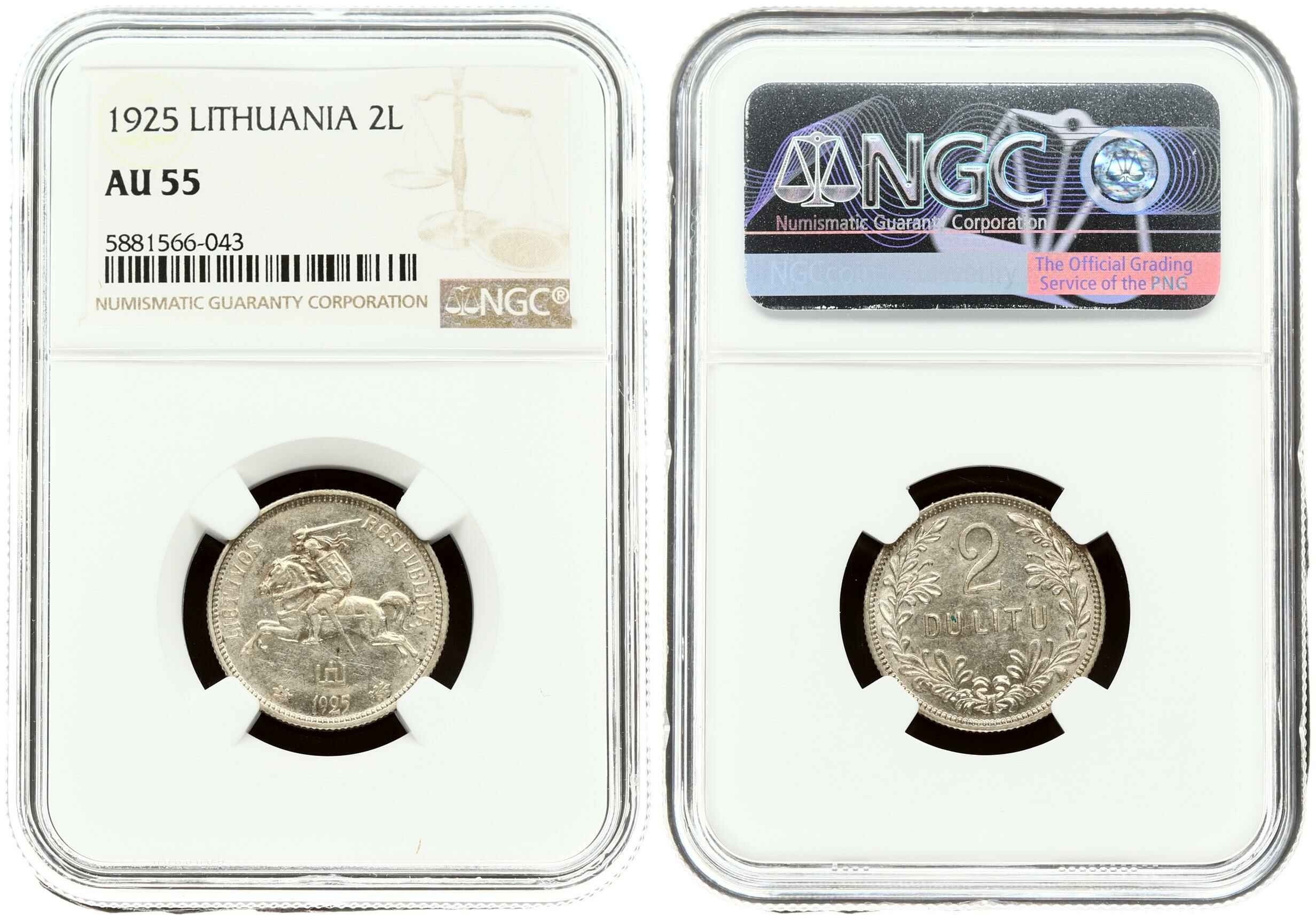 Lithuania. 2 litu 1925. Silver. KM 77, Ivanauskas 2013 8PR1-1. NGC AU 55