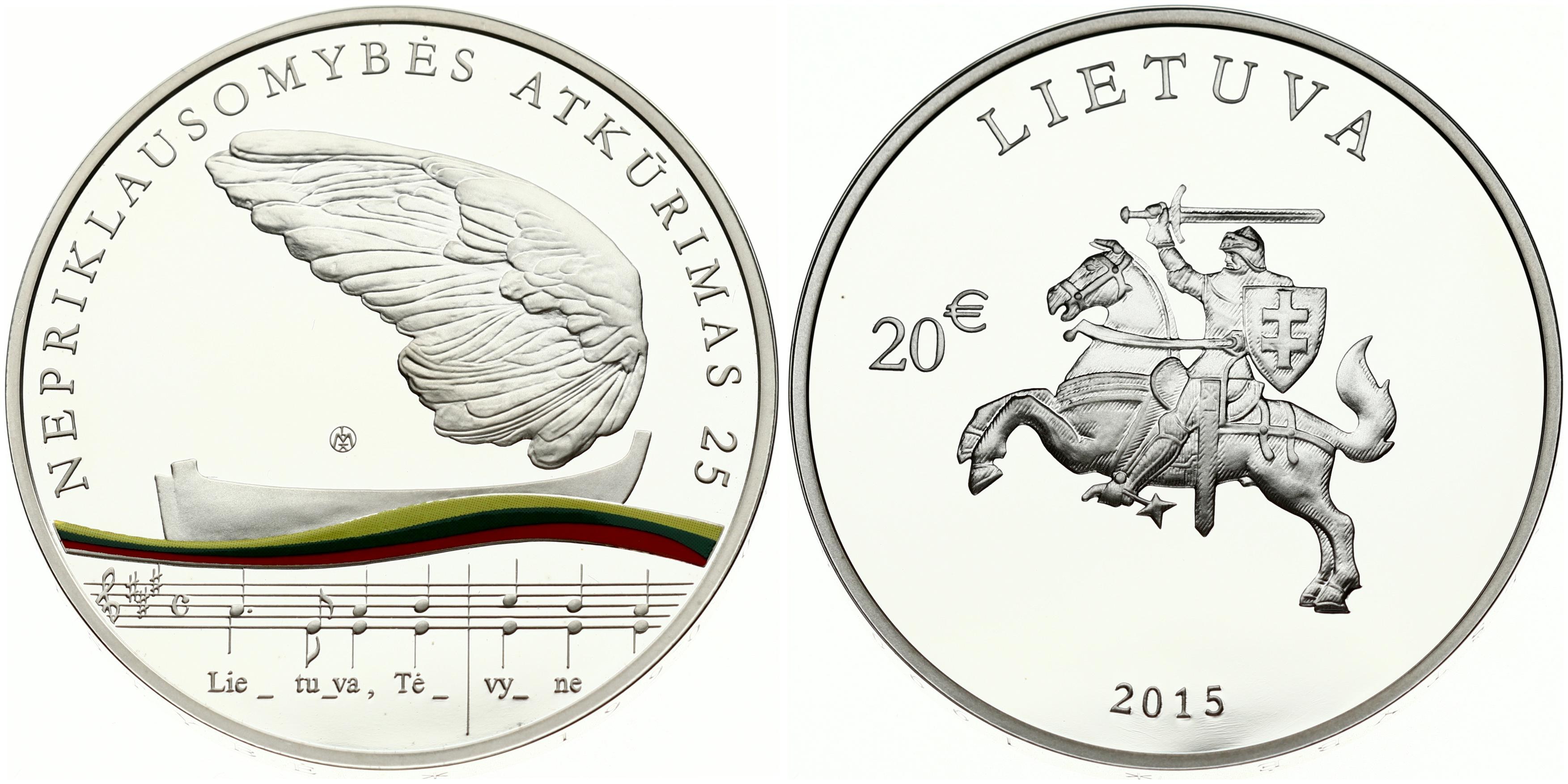 Lithuania 20 Euro 2015 25th anniversary of the restoration of Lithuania’s Independence. Obverse...