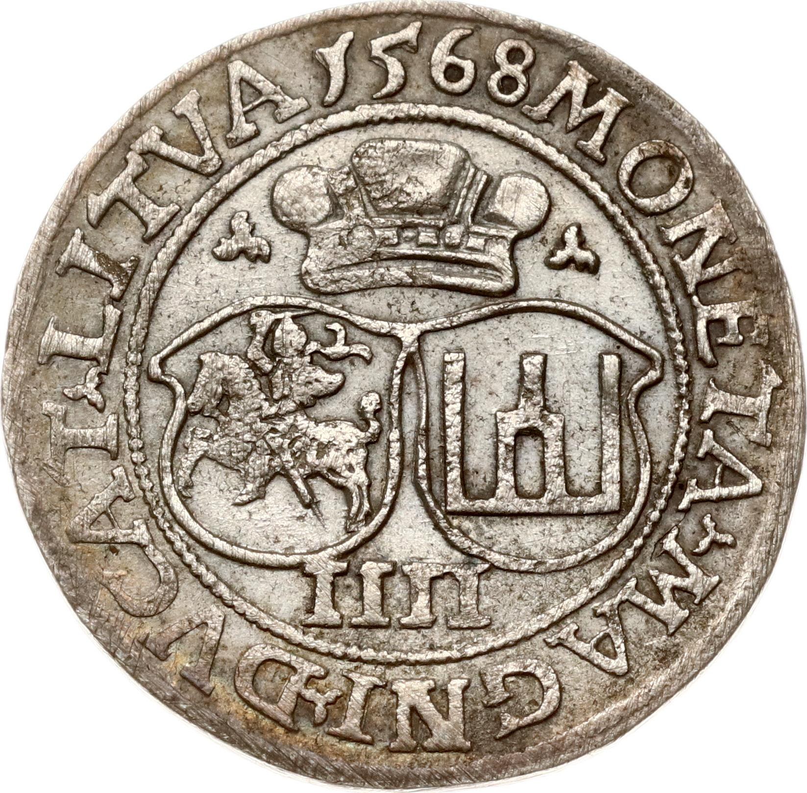 Lithuania. Zygmunt II August (1545–1572). Czworak 1568, Vilnius, Subtitle endings LI / LITVA. Silver 4.09 g. Kop. 3313 (R1).