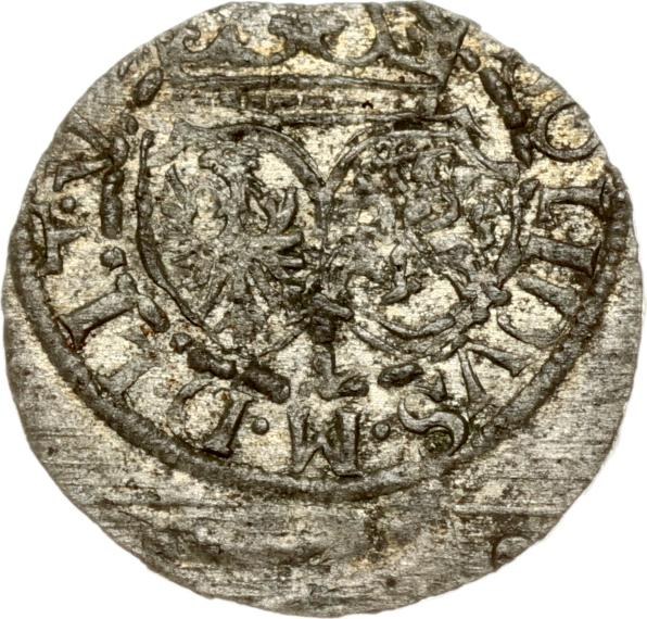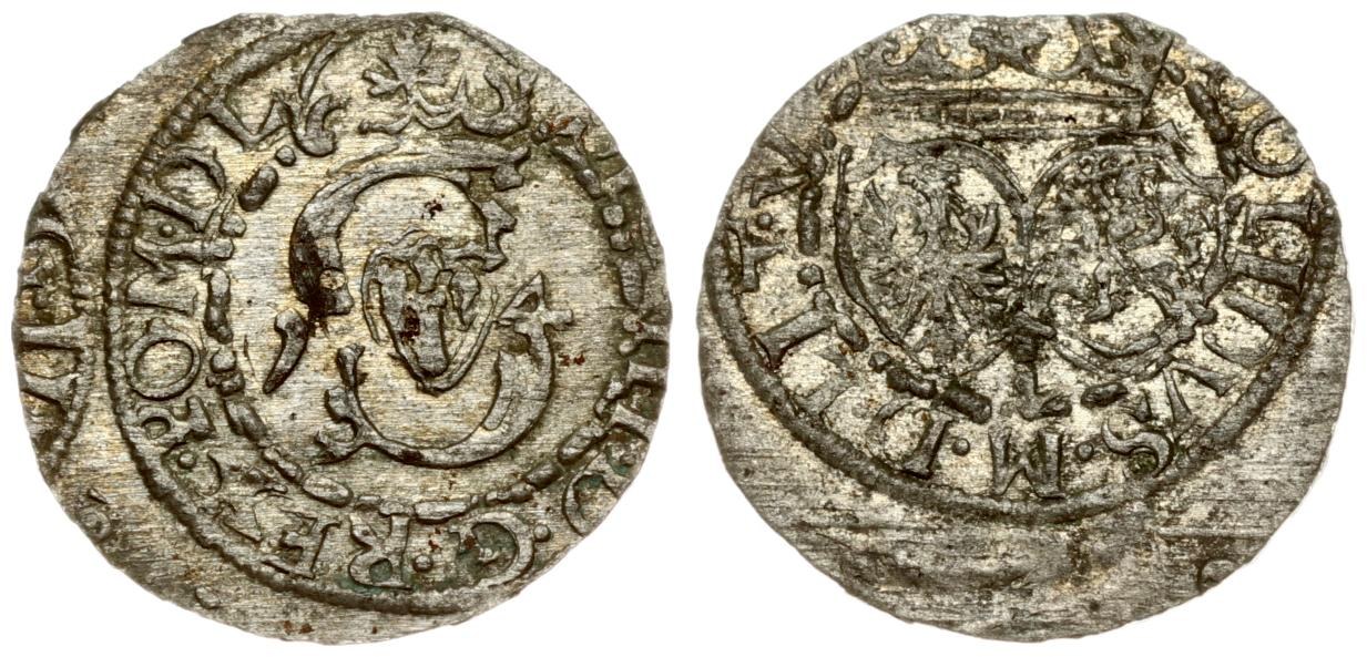 Lithuania Szelag 1614 Vilnius. Zygmunt III Waza (1587-1632). Legend ends L/LIT.V. Silver 0.652g. Like Ivanauskas 2013 2SV28-12 R, but with dot after L. Patina