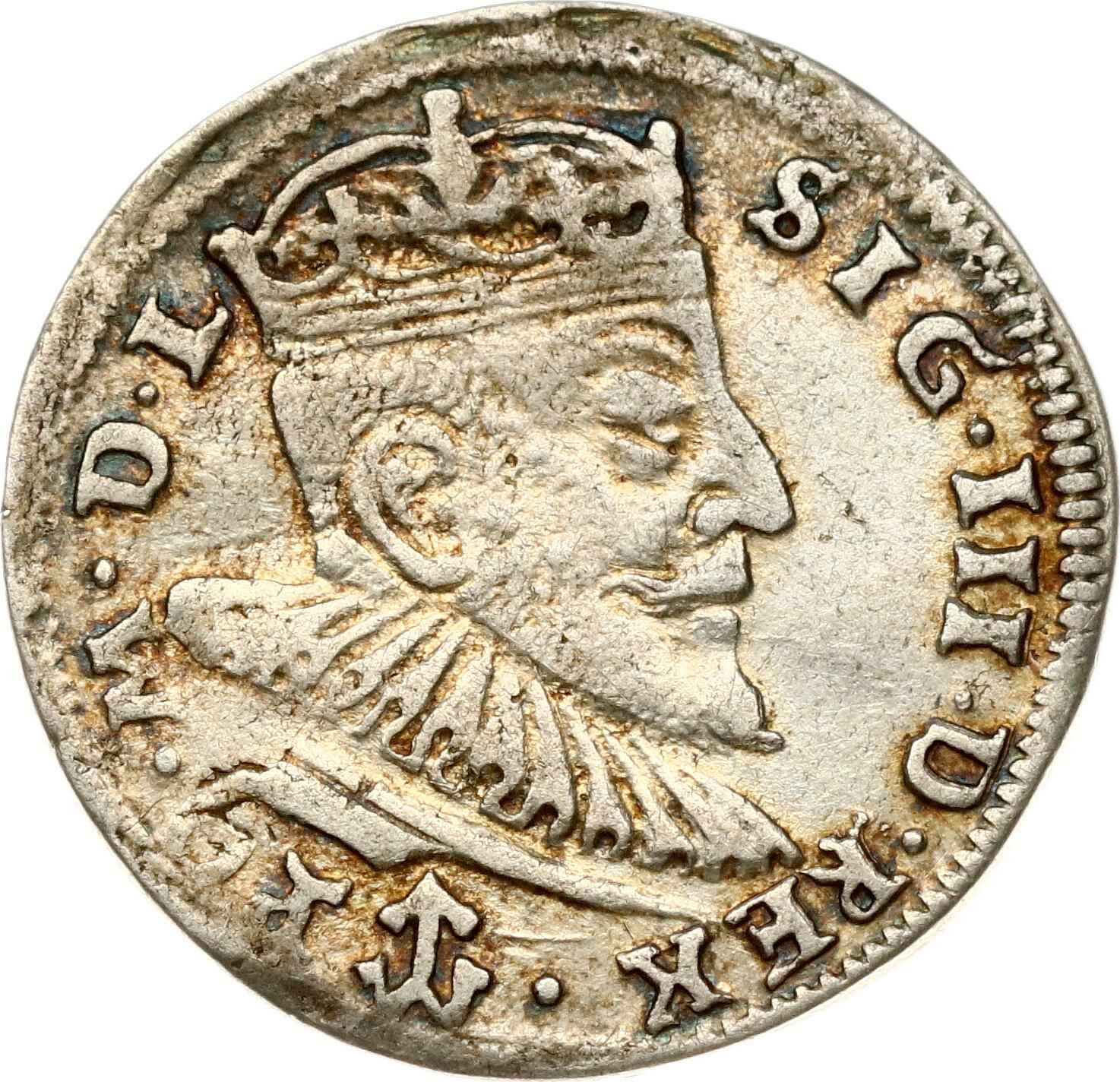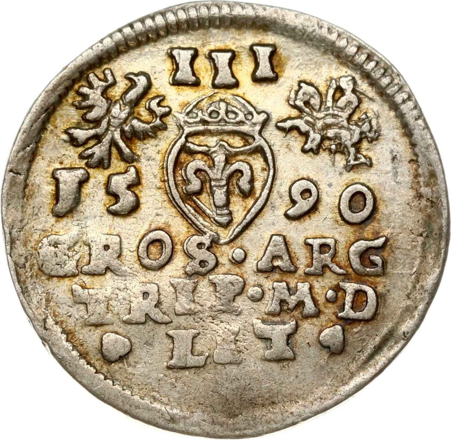 Lithuania. Zygmunt III Waza (1587-1632). Trojak 1590 Vilnius. Variety with Chalecki on obverse and D.REX (w/o G) in legend. Silver 2.31 g. Kop. 3516 (R1), Iger V.90.1.b (R2), Ivanauskas 5SV15-9 (RR)