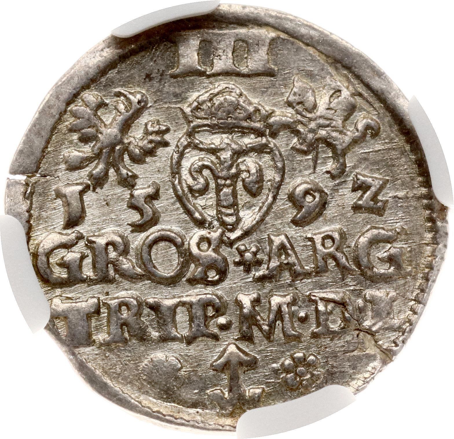 Lithuania. Zygmunt III Waza (1587–1632). Trojak 1592 Vilnius. Silver. Iger V.92.1.c (R1). NGC MS 62.