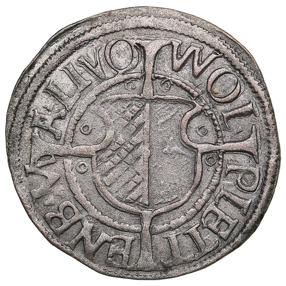 Obv.: Coat of arms, annulets in field, long cross behind divides legend “WOL’ PLETT-ENB’ M-A’ LIVO”.