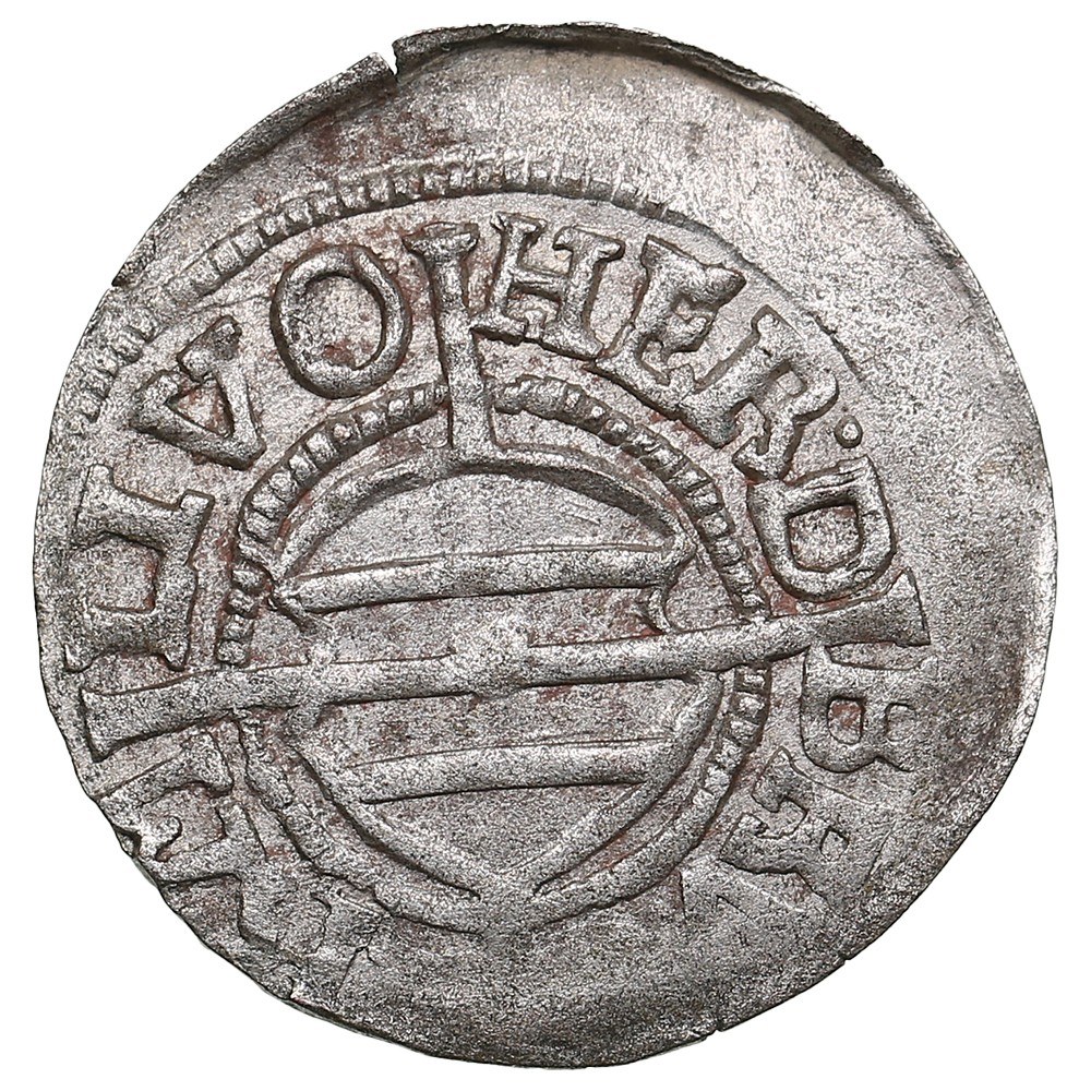 Obv.: Coat of arms, long cross behind divides legend “HER·D BRVG HA·M LIVO”.