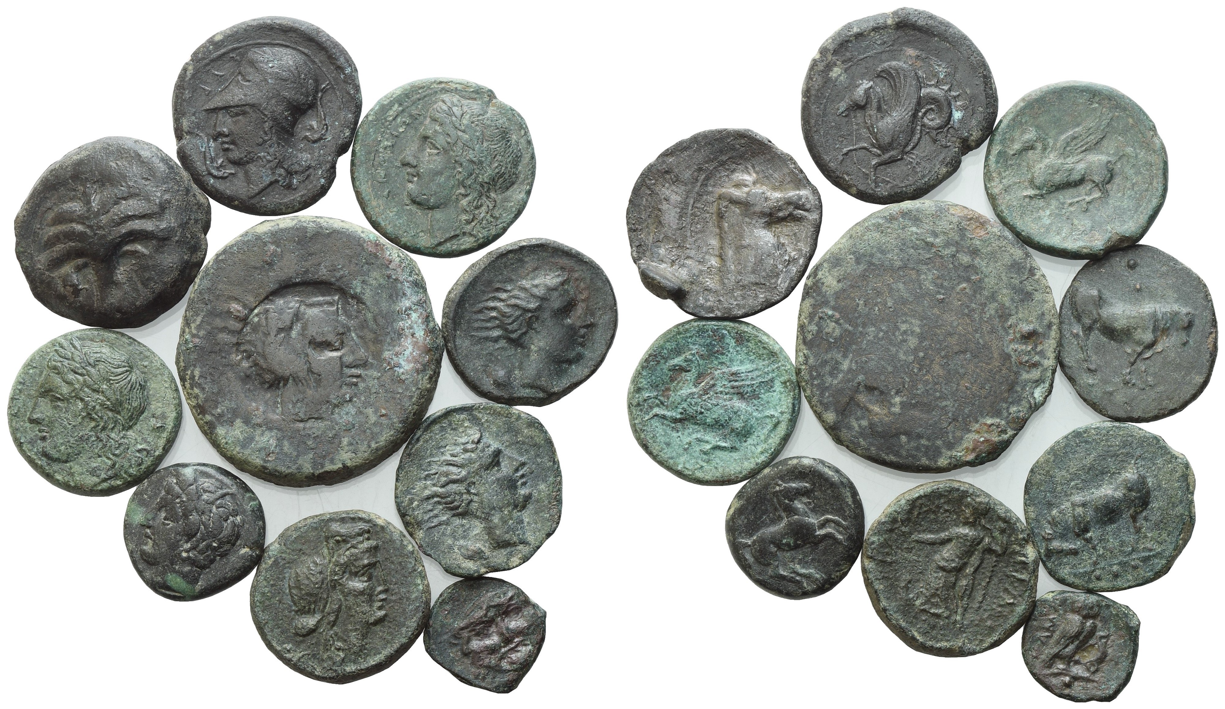 Lot of 10 Greek Æ coins to be catalogued. Lot sold as is, no returns.