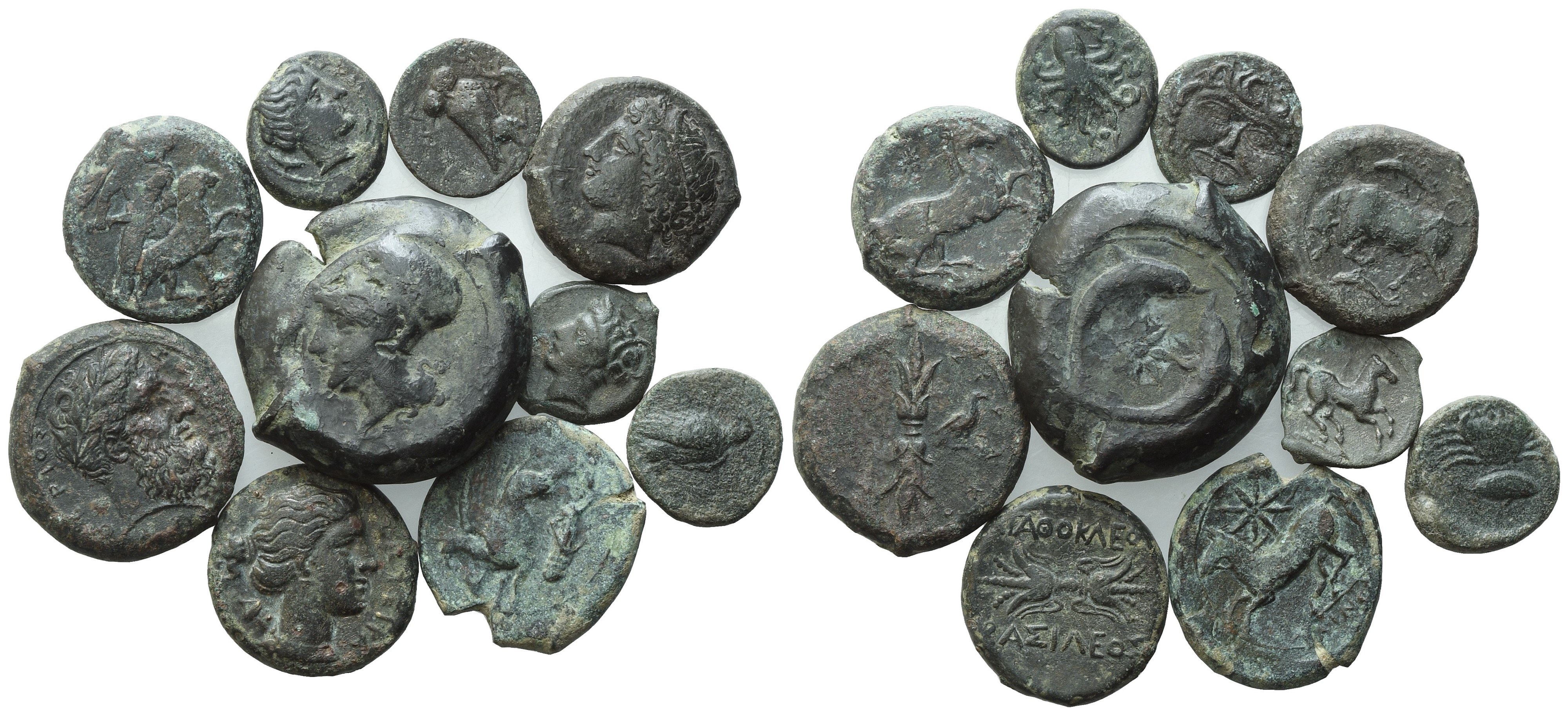 Lot of 10 Greek Æ coins to be catalogued. Lot to be sold as is, no returns.