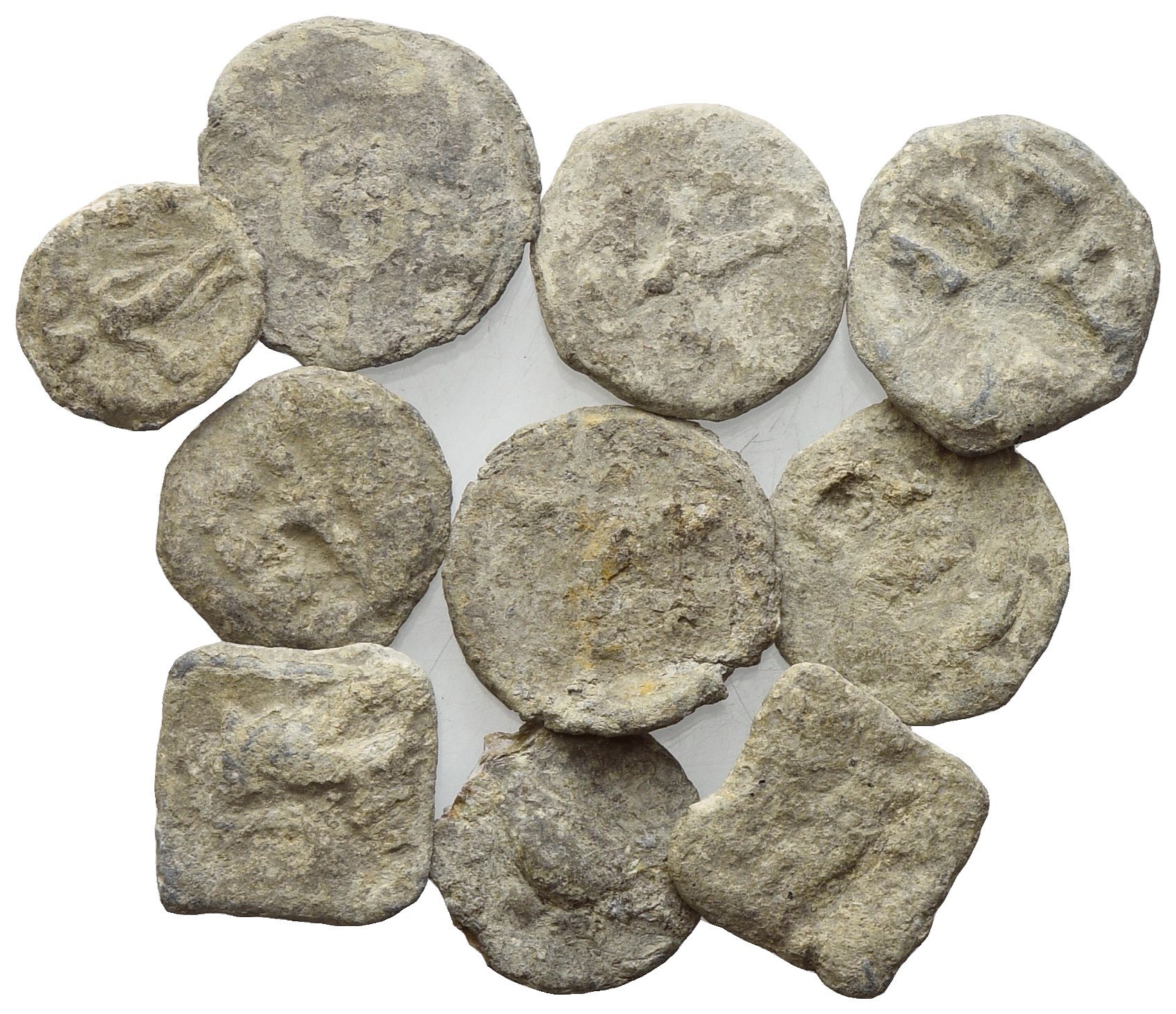 Lot of 10 lead tesserae. Lot to be sold as is, no returns.