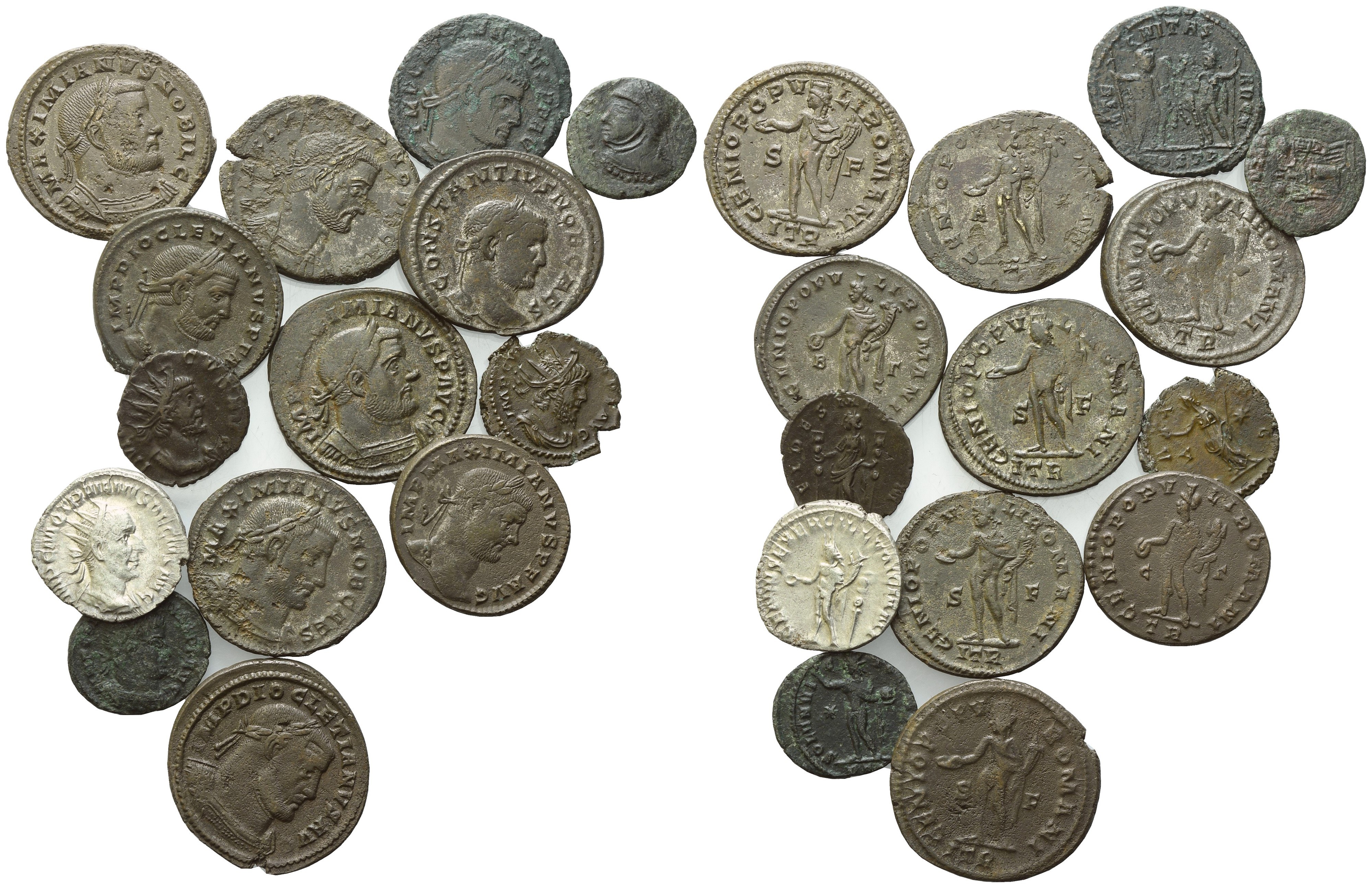 Lot of 14 Roman Æ and AR coins to be catalogued. Lot sold as is, no returns.