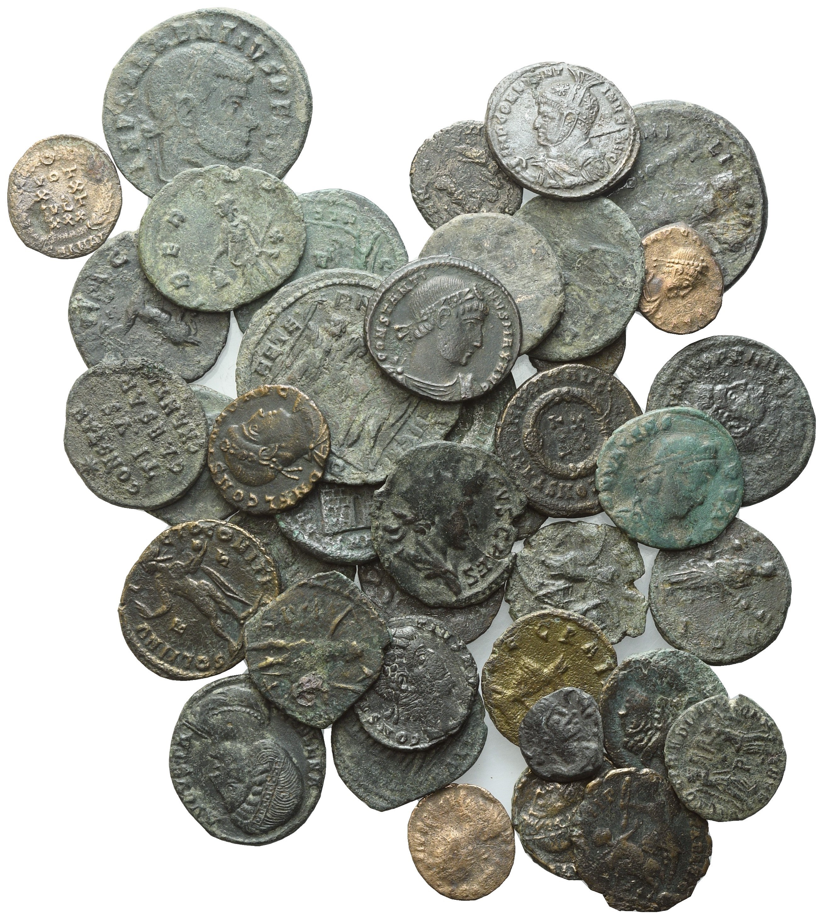 Lot of 42 Roman coins to be catalogued. Lot sold as is, no returns.