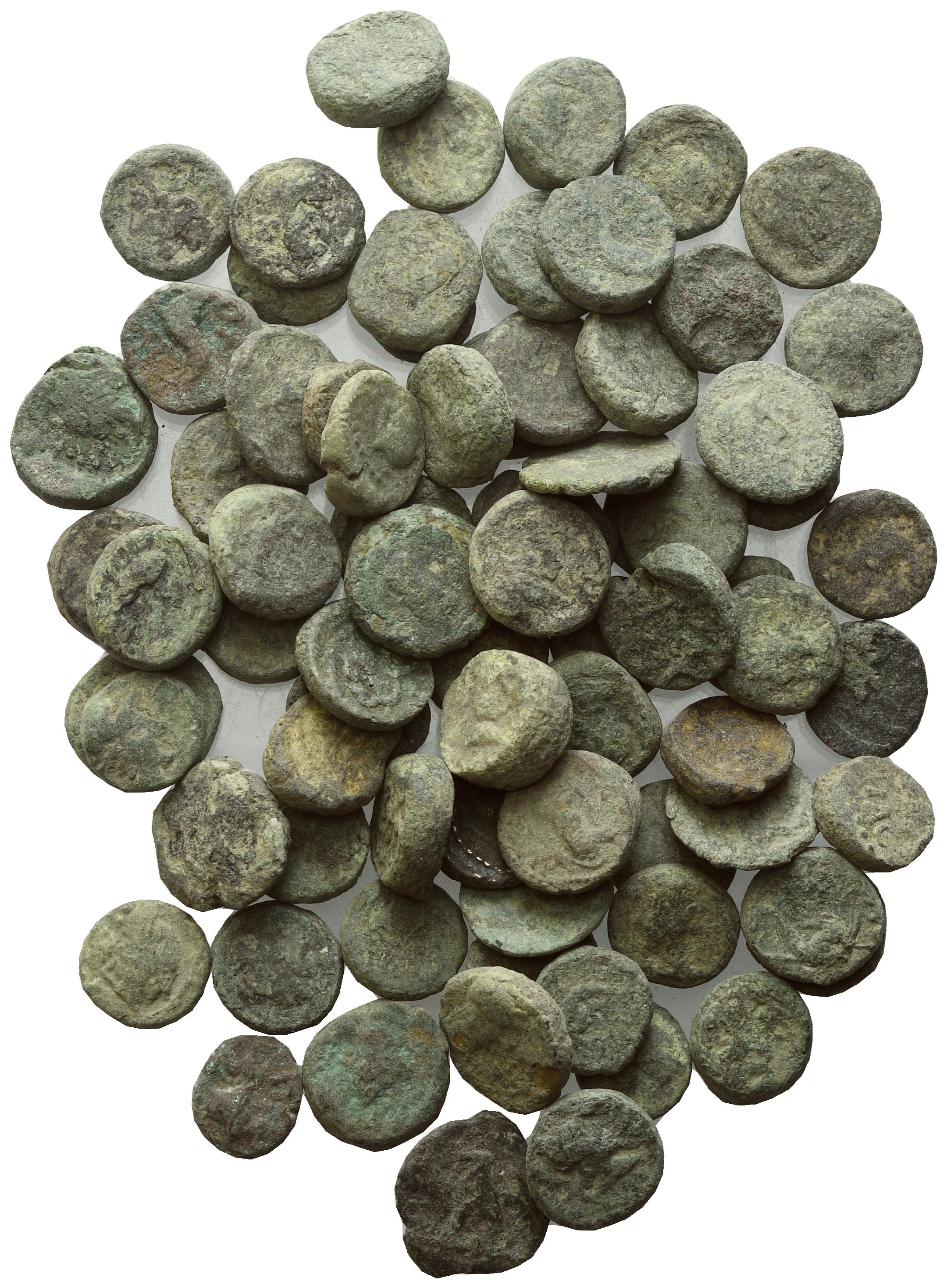 Lot of 77 Æ coins to be catalogued. Lot to be sold as is, no return.