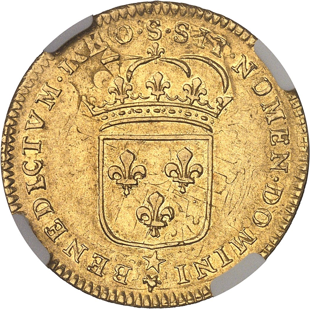 Rv. (atelier) SIT NOMEN DOMINI (différent) BENEDICTVM (date). Écu de France couronné.