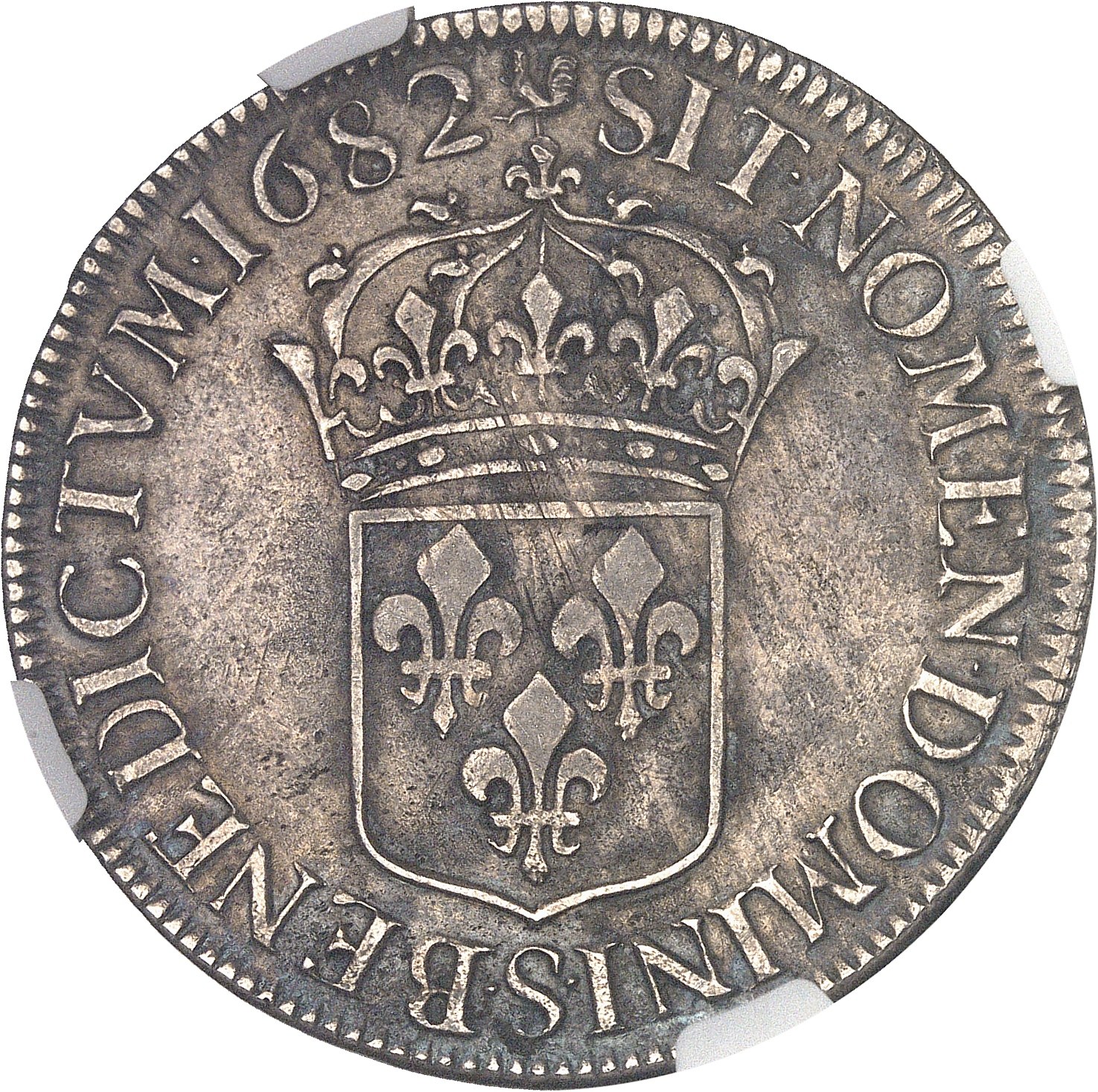 Louis XIV (1643-1715). Écu à la cravate, 2e émission par F. Warin 1682, S, Reims.NGC AU DETAILS CLEANED (6633193-022).
