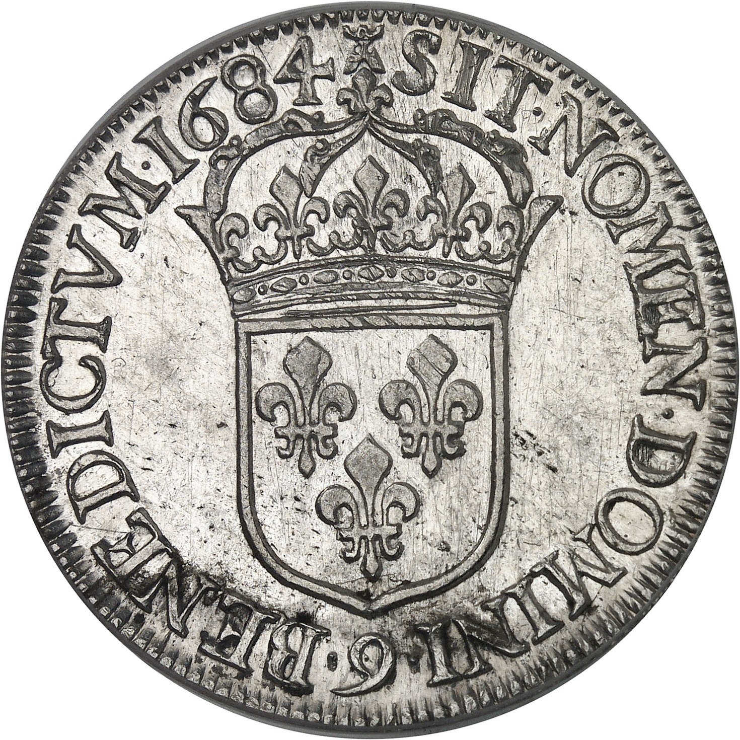 Louis XIV (1643-1715). Écu au jabot ou à la cravate, 2e type 1684, 9, Rennes. PCGS MS62 (44701508).