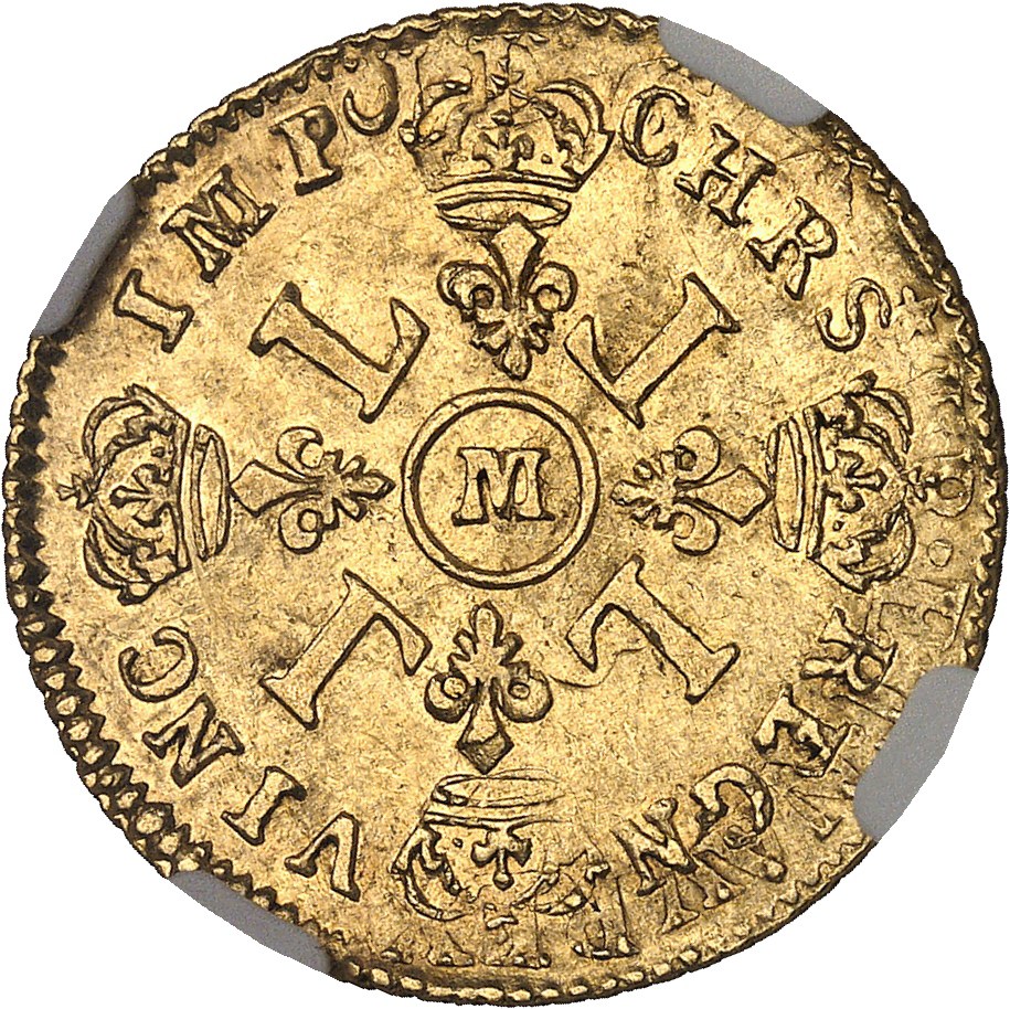 Louis XIV (1643-1715). Louis d’or aux quatre L 1694, M, Toulouse. NGC AU 55 (6636328-035).