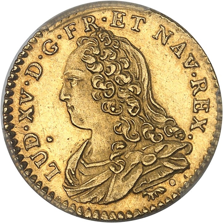 Av. LUD. XV. D. G. FR. ET. NAV. REX. Buste à gauche du Roi, drapé, la tête nue ; au-dessous (différent).