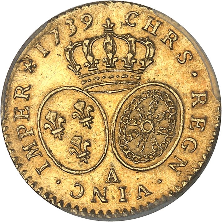 Louis XV (1715-1774). Demi-louis d’or aux lunettes 1739, 2e semestre, A, Paris. PCGS MS62 (47058298).