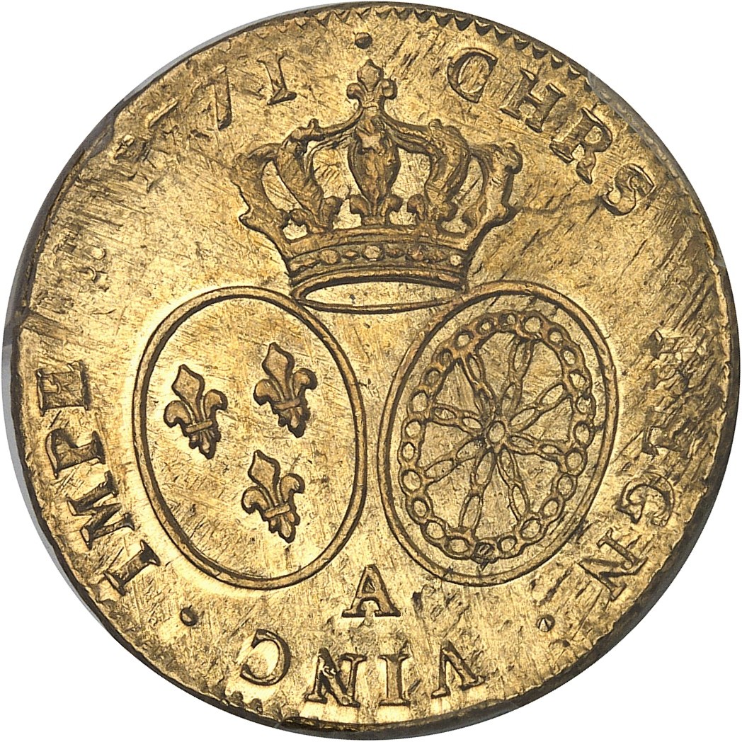 Louis XV (1715-1774). Double louis d’or à la vieille tête 1771/0, 2e semestre, A, Paris. PCGS MS61 (46366220).