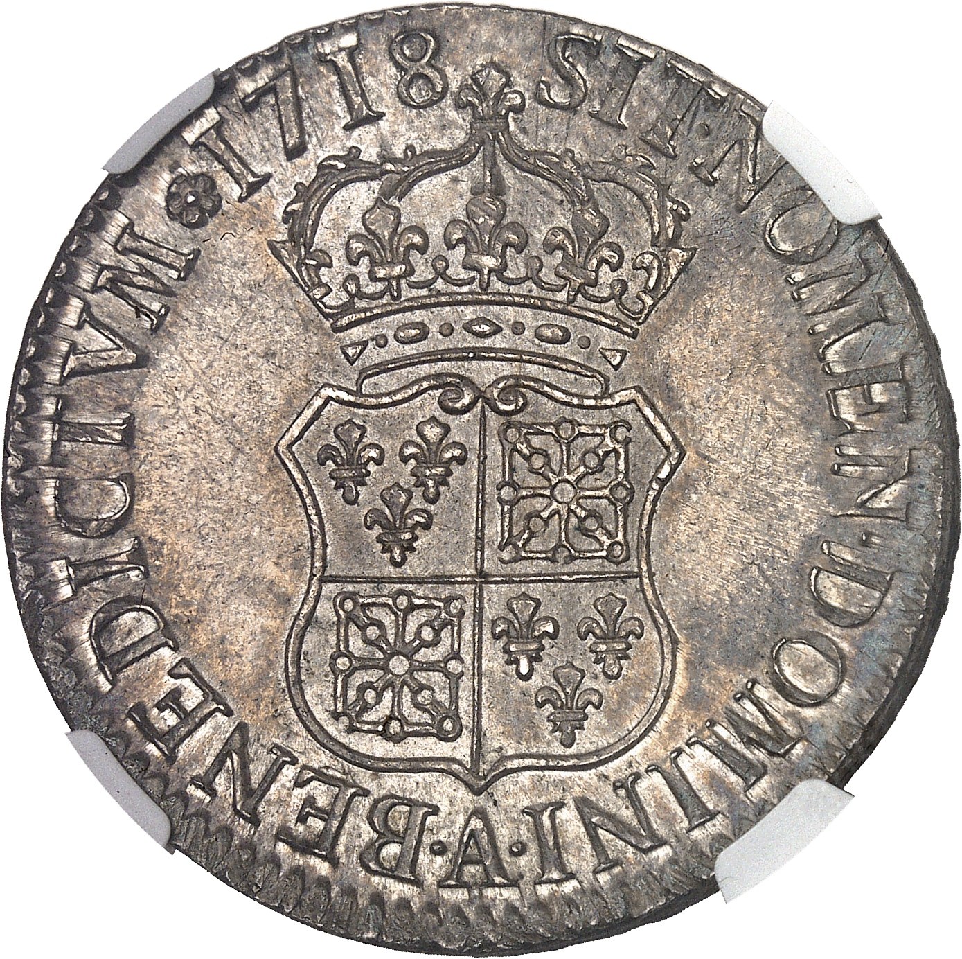 Louis XV (1715-1774). Écu de France-Navarre 1718, A, Paris. NGC MS 64 (6636328-022).