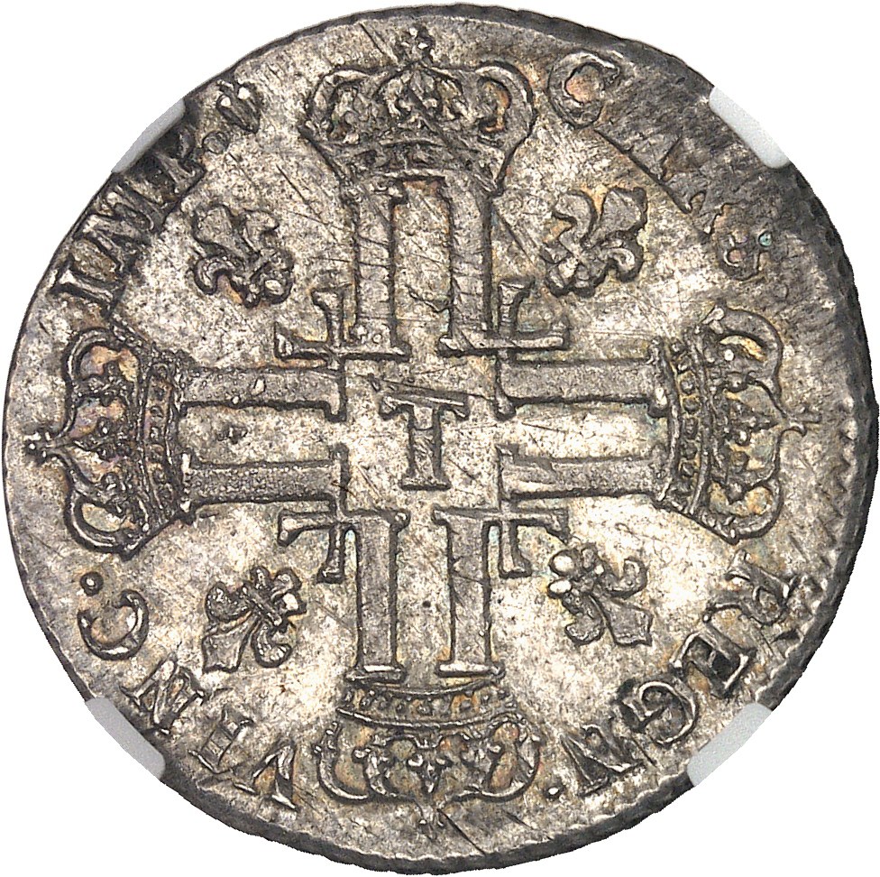 Rv. CHRS. REGN. VINC. IMP (différent). Croix formée de huit L adossées, chaque bras étant couronné, (atelier) en cœur, cantonnée de quatre lis divergeant du centre.