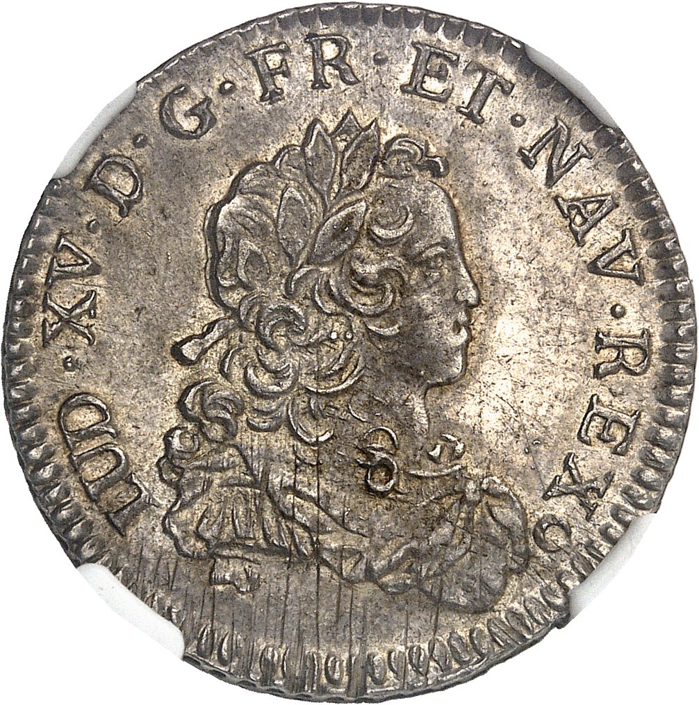 Av. LUD. XV. D. G. FR. ET NAV. REX (différent). Buste du Roi à droite, lauré, drapé et cuirassé.