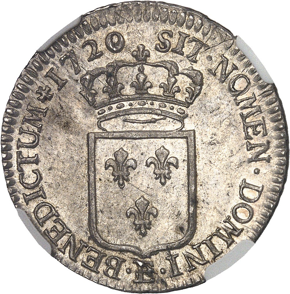 Louis XV (1715-1774). Tiers d’écu de France, flan neuf 1720, E, Tours. NGC UNC DETAILS CLEANED (6635720-038).