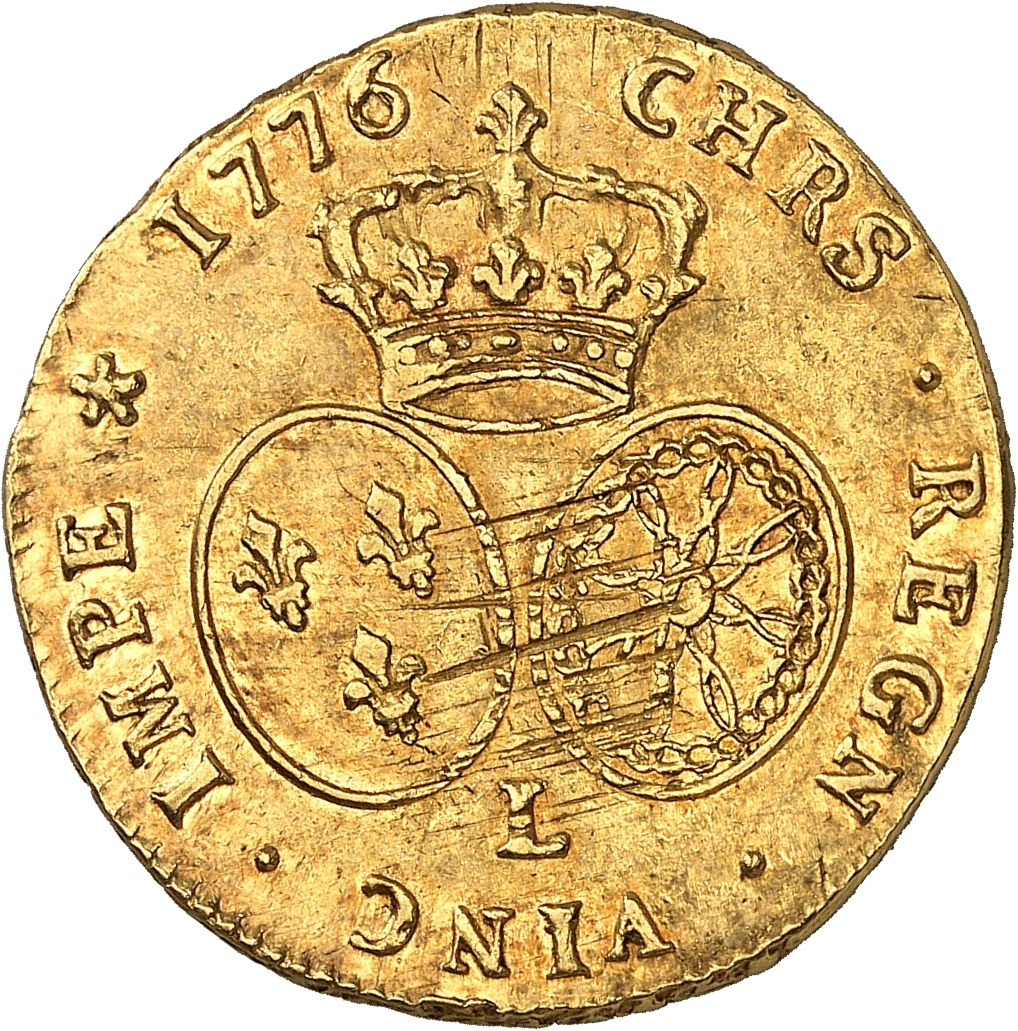 Louis XVI (1774-1792). Double louis d’or aux lunettes 1776, L, Bayonne. NGC AU 58 (6639741-032).