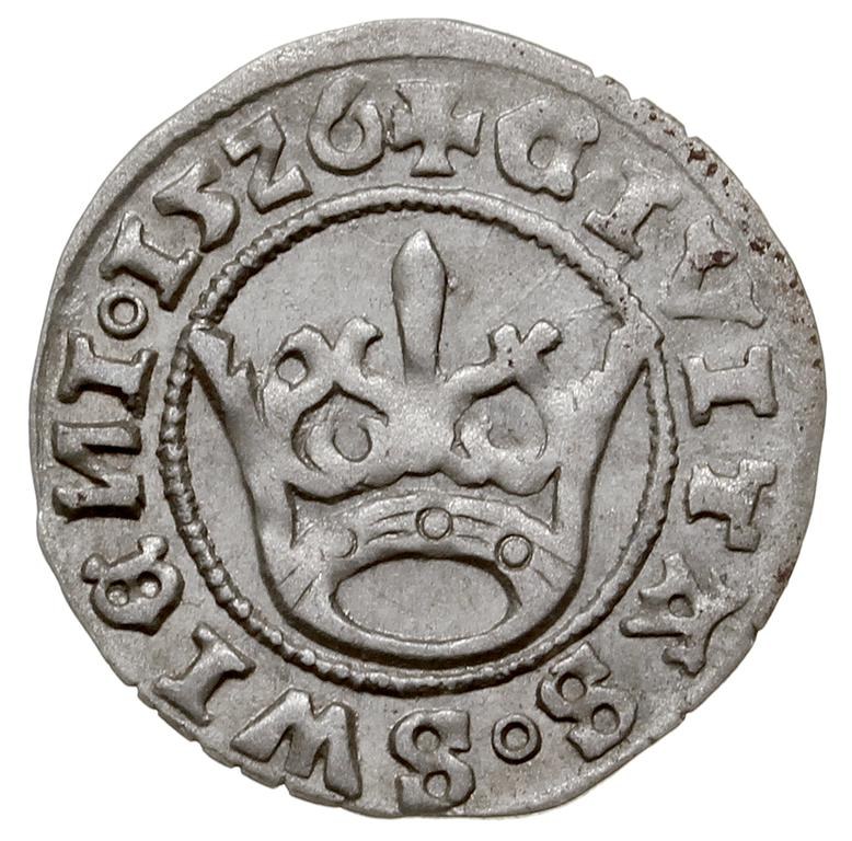 ŚWIDNICA - miasto, Ludwik Jagiellończyk jako król Czech i Węgier 1516-1526, półgrosz, 1526, Świdnica, Fbg. 372, bardzo ładny z lustrem menniczym