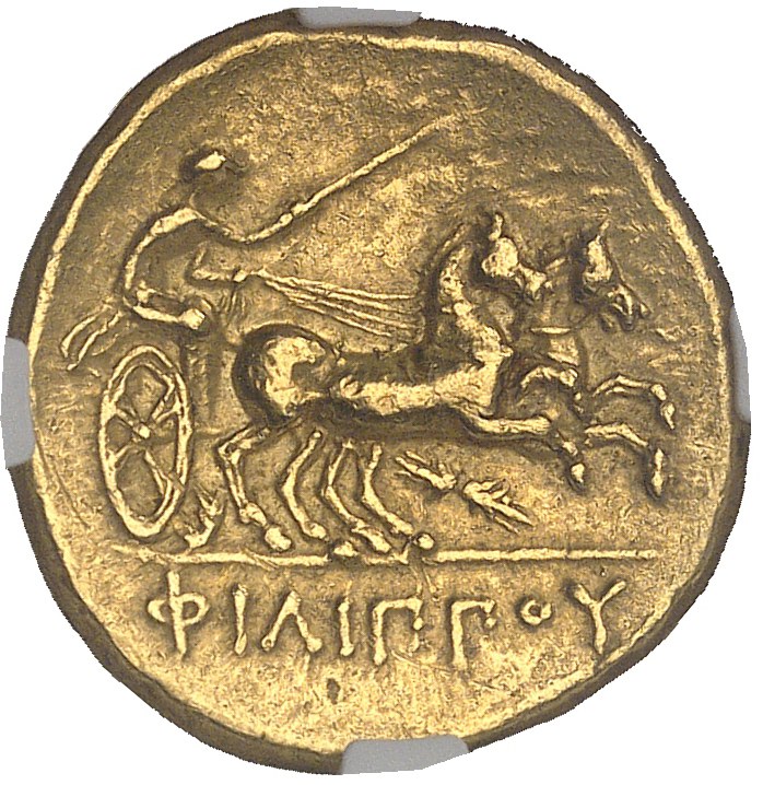 Macédoine (royaume de), Philippe II (359-336 av. J.-C.). Statère d’or posthume ND (323-315 av. J.-C.), Amphipolis ou Pella.NGC Ch XF 5/5 3/5 (6630872-004).