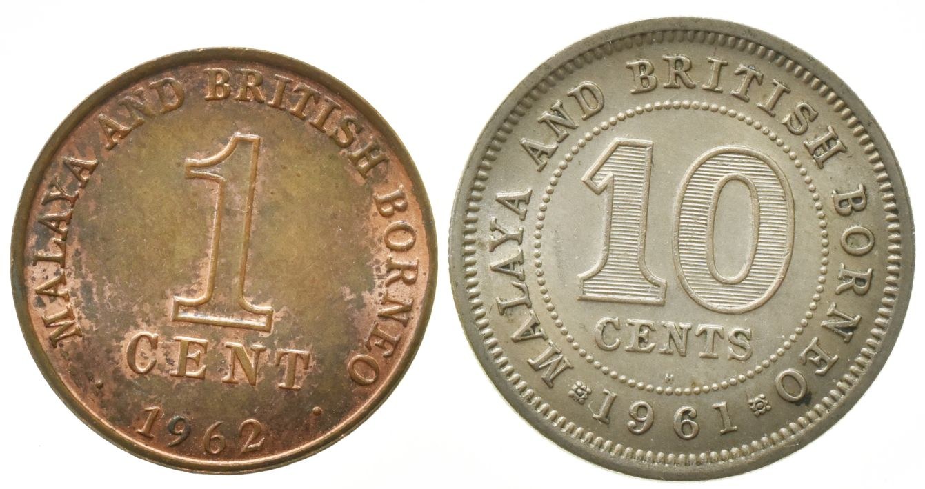 Malajsko a Britské Borneo, 10 cents 1961, 1 cent 1962, 2 ks