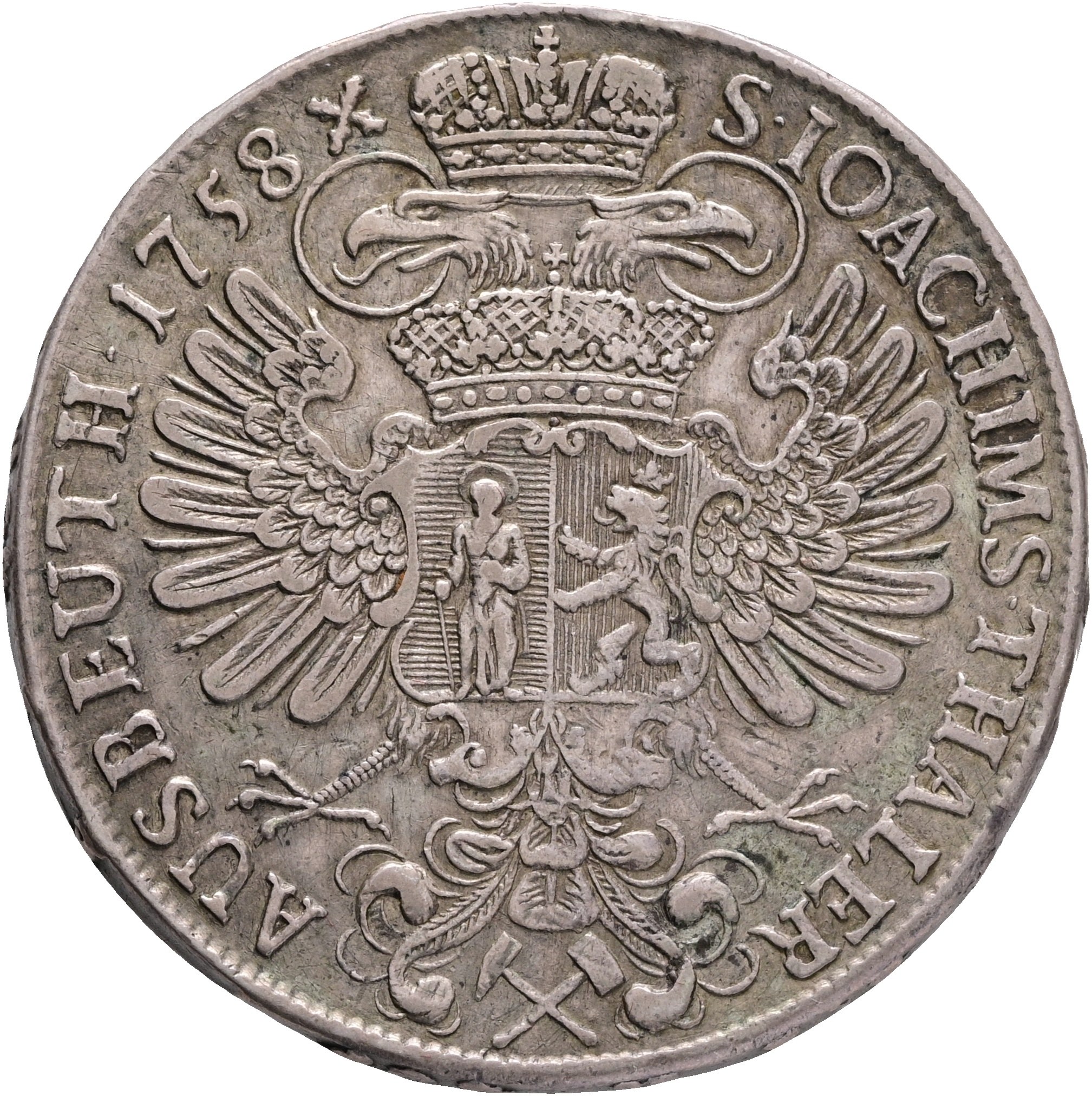 MARIA THERESIA 1740-1780 1 Thaler 1758 Prague, St.Joachim and Bohemia, Hal#1942 KM#787 Ag.875 27,94g 40mm RR!, edge