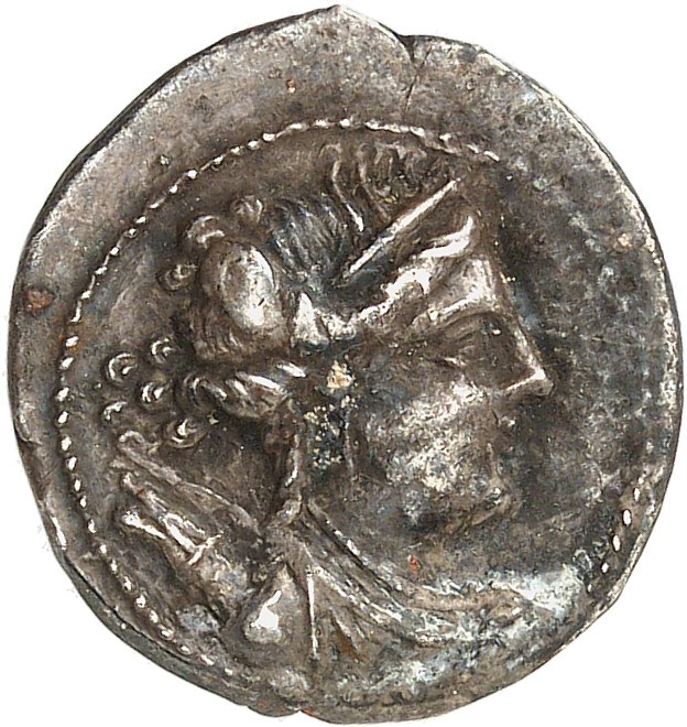 Av. Buste drapé et diadémé d’Artémis à droite, avec boucles d’oreilles et collier de perles ; derrière, un carquois et un arc.