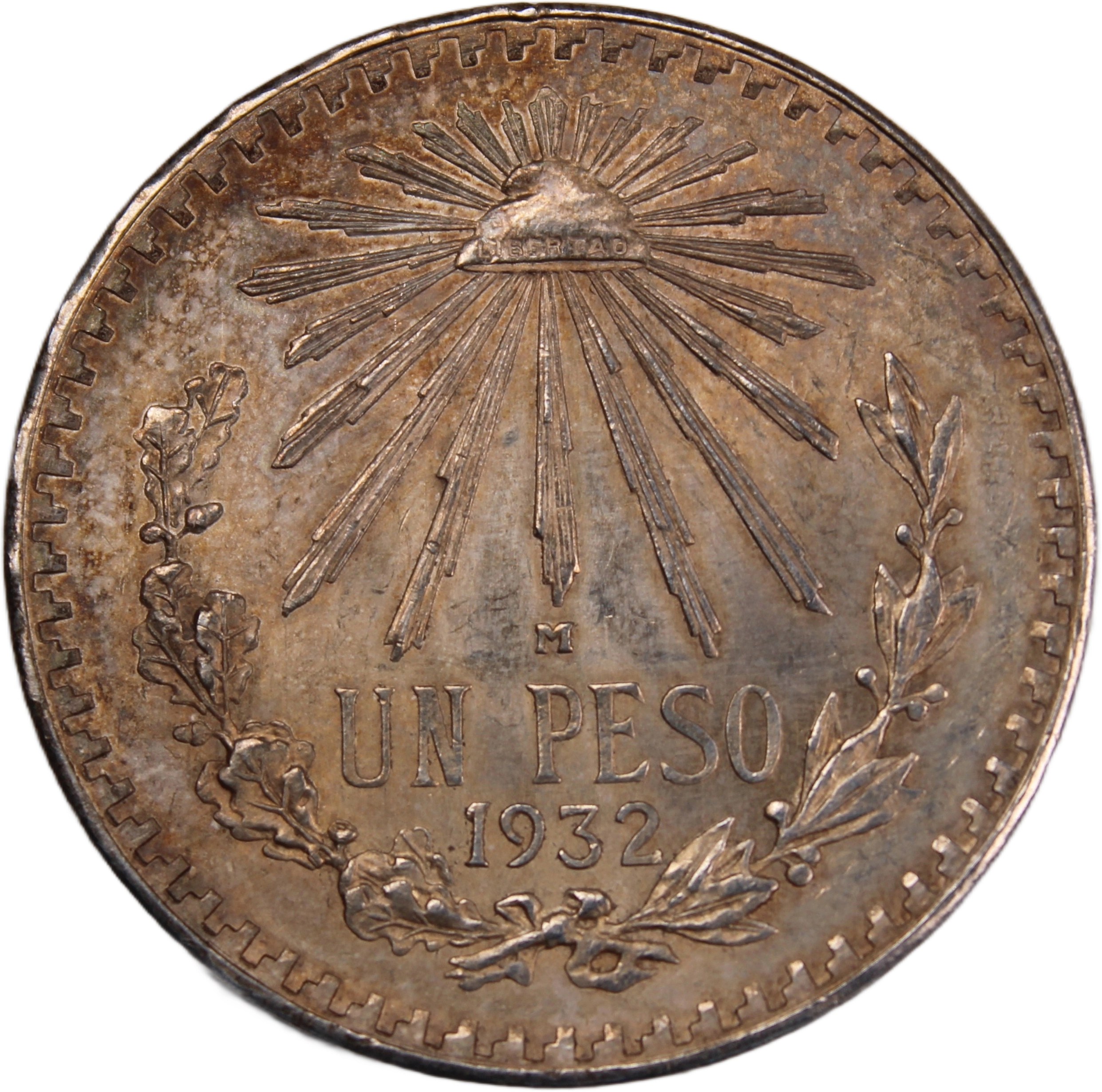 Mexico 1 Peso 1932 closed "9" variety Silver KM#455