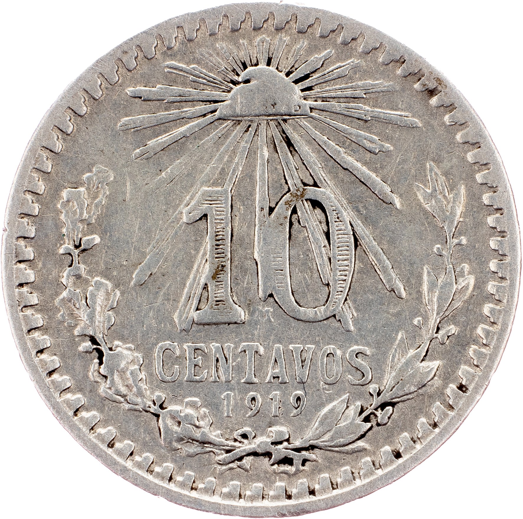 Mexico, United Mexican States, 10 Centavos 1919, Mexico City, 1,779 g, Ag (800/1000), KM# 429; VF
