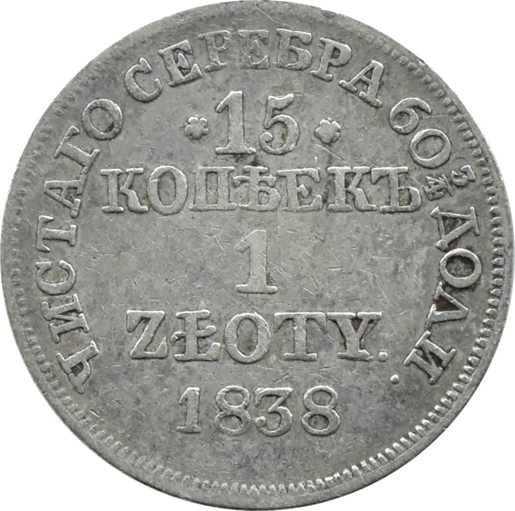 Zabór Rosyjski, Mikołaj I (1825-1855), 15 kopiejek/1 złoty 1838 MW, mennica Warszawa
