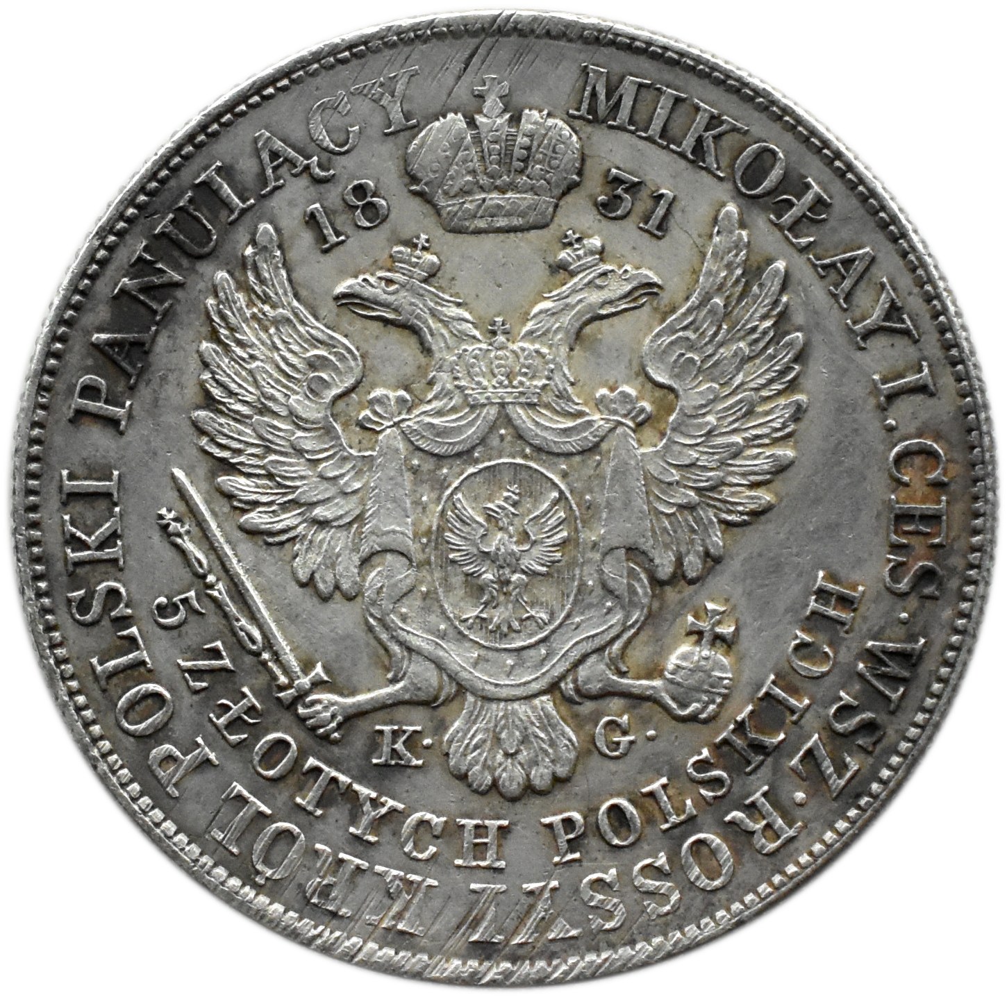 Zabór Rosyjski, Mikołaj I (1825-1855), 5 złotych 1831 K.G., mennica Warszawa, PIĘKNE!!