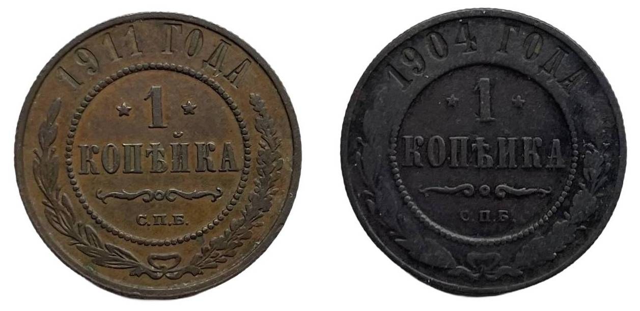 Mikołaj II (1894-1917) zestaw 1 kopiejka 1904 i 1911 Petersburg