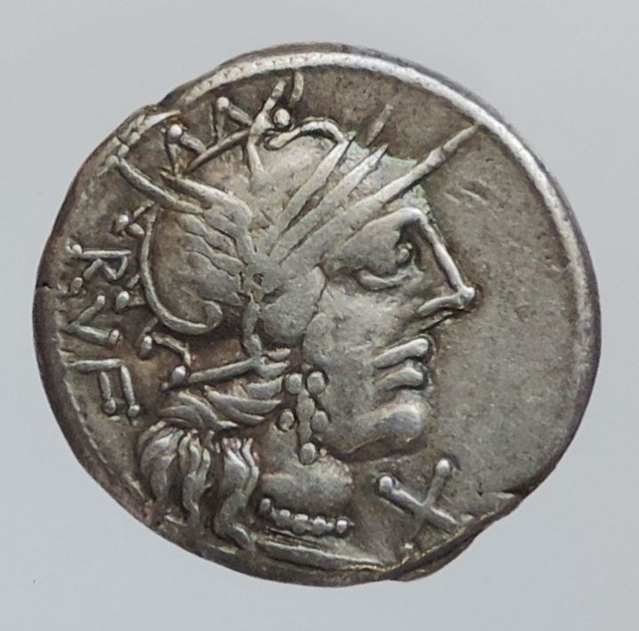 denár, hlava Romy, ta hlavou RVF, rv: Dioscurové na koních, Q.MINV/ROMA, Crw. 277, BMC 464, Albert 1036 3,91g