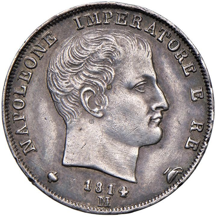 Napoleonic coins minted in Italy - Napoleone (1804-1814) Milano - Lira 1814 puntali a...