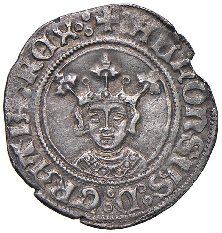 NAPOLI Alfonso I d'Aragona (1442-1458) Reale - MIR 57 AG (g 2,95) R Mancanze al bordo.