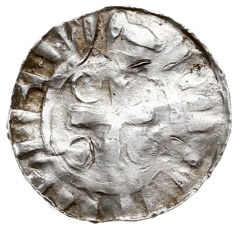 POMORZE?, POLSKA?, SŁOWIAŃSZCZYZNA ZACHODNIA, Naśladownictwo denara krzyżowego, Aw: Krótki krzyż z kółkami, Rw: Krótki krzyż z zachodzącymi kółkami, srebro 1.31 g, duża ciekawostka mało przypominająca popularne denary krzyżowe