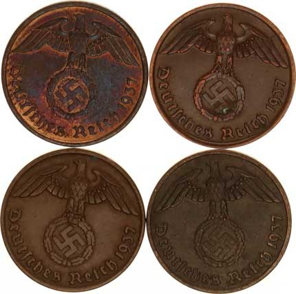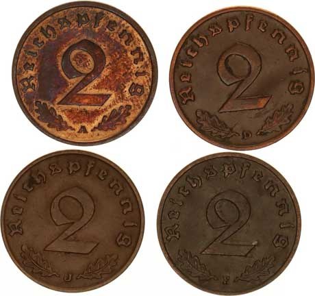 Německo - 3 říše, 1933-1945, 2 Rpf. 1937 A, D, F, J 4 ks