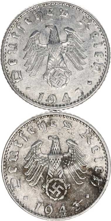Německo - 3 říše, 1933-1945, 50 Rpf. 1943 A, D 2 ks