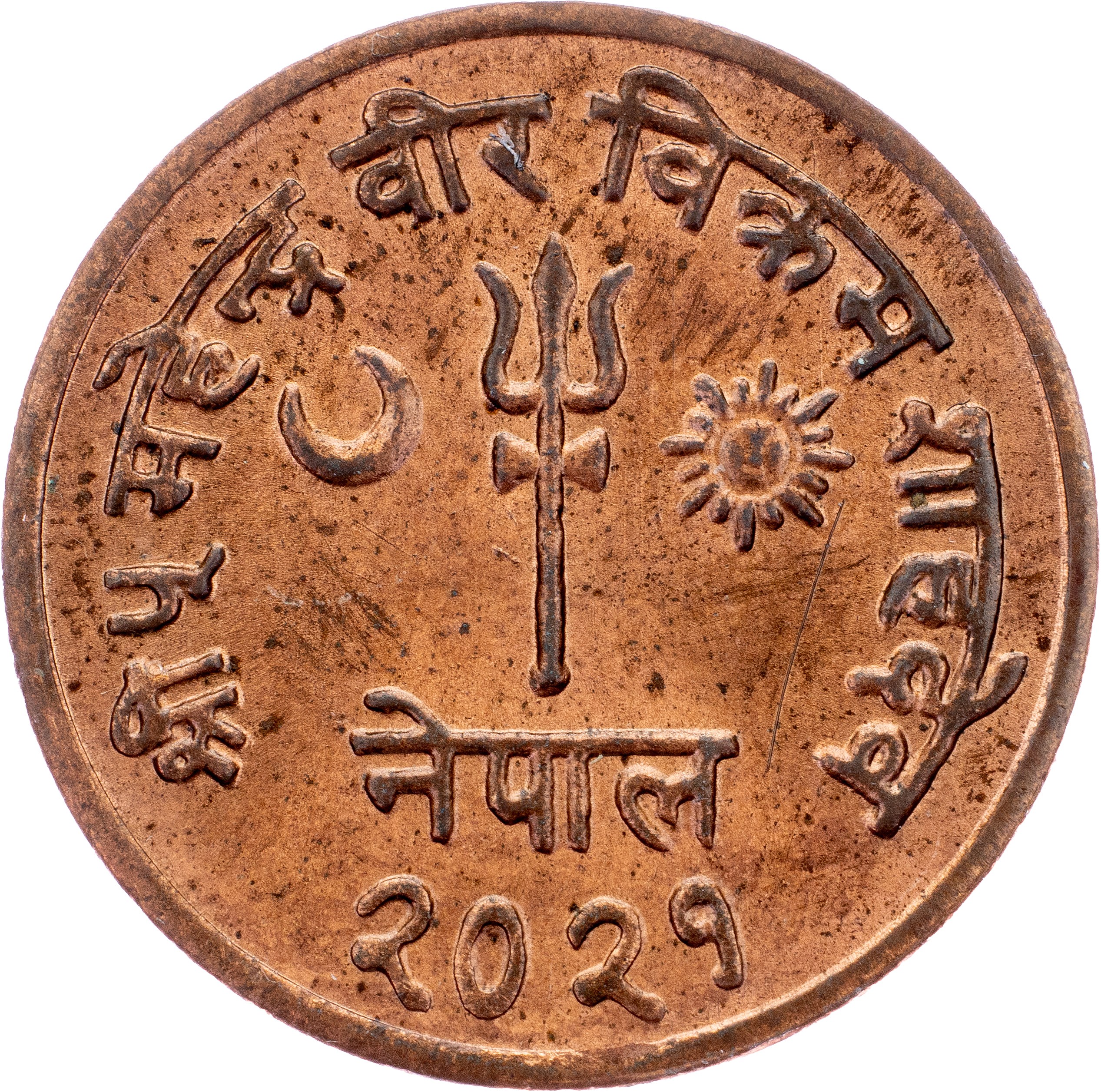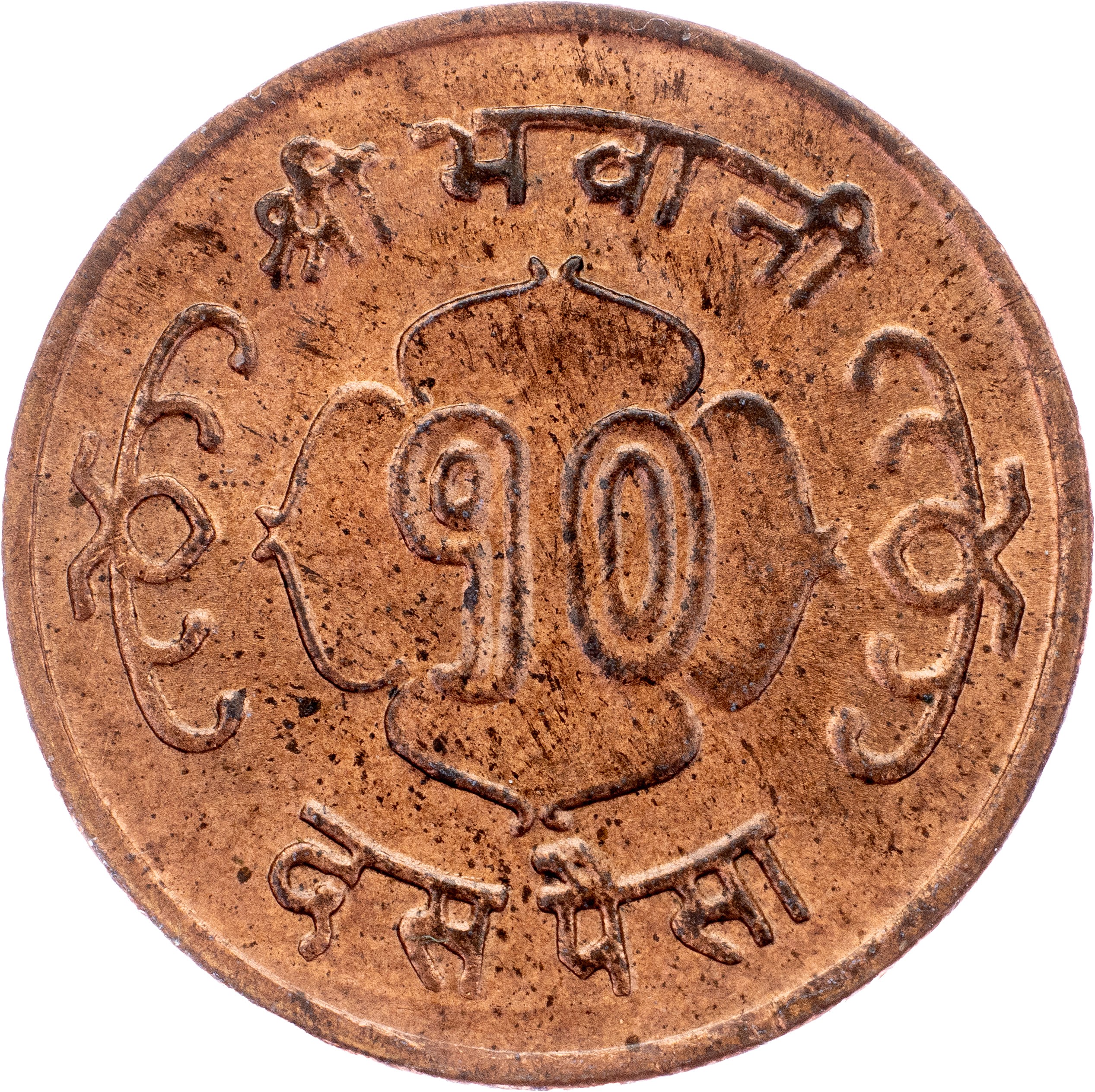 Nepal, Mahendra Bir Bikram Shah, 10 Paisa 2021 (1964), 5 g, Bronze, KM# 764, mint luster, toned; UNC