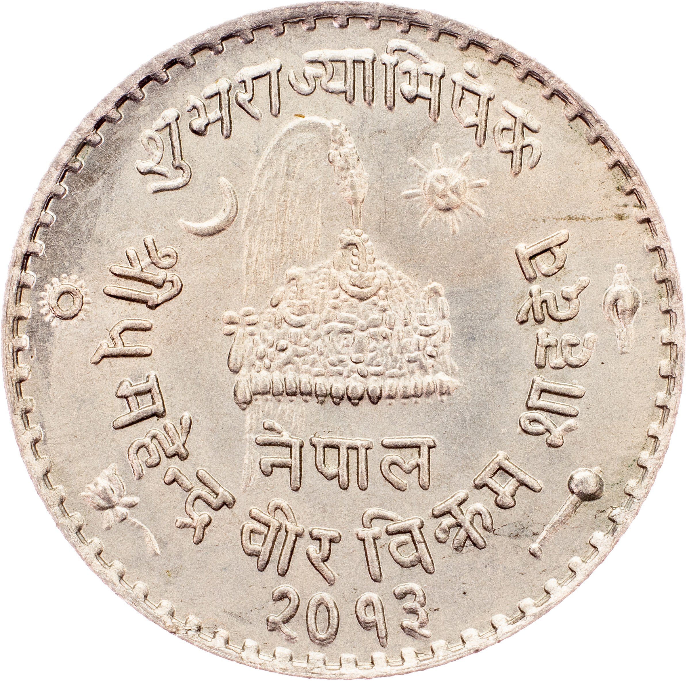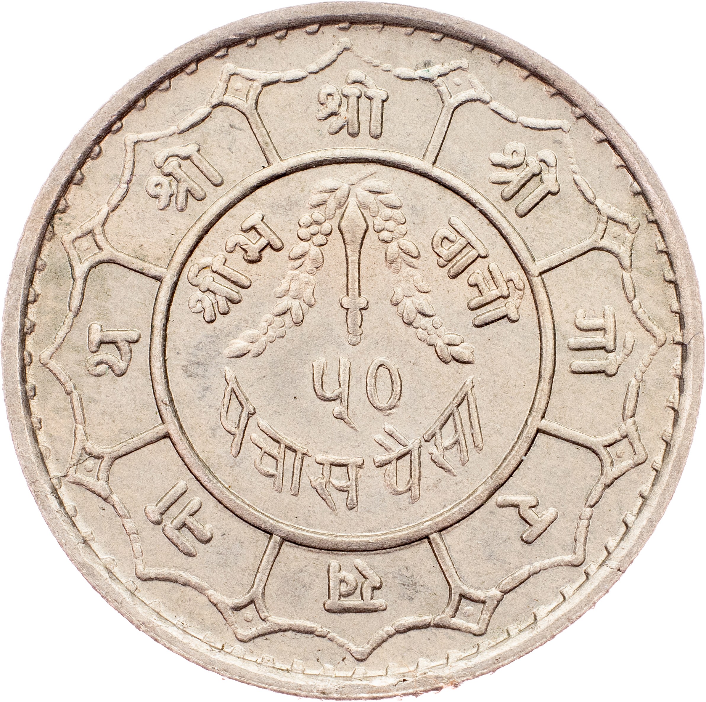 Nepal, Mahendra Bir Bikram Shah, 50 Paisa 2013 (1956), 5,845 g, Copper-nickel, KM# 776, Mahendra Coronation, mint luster, toned; UNC