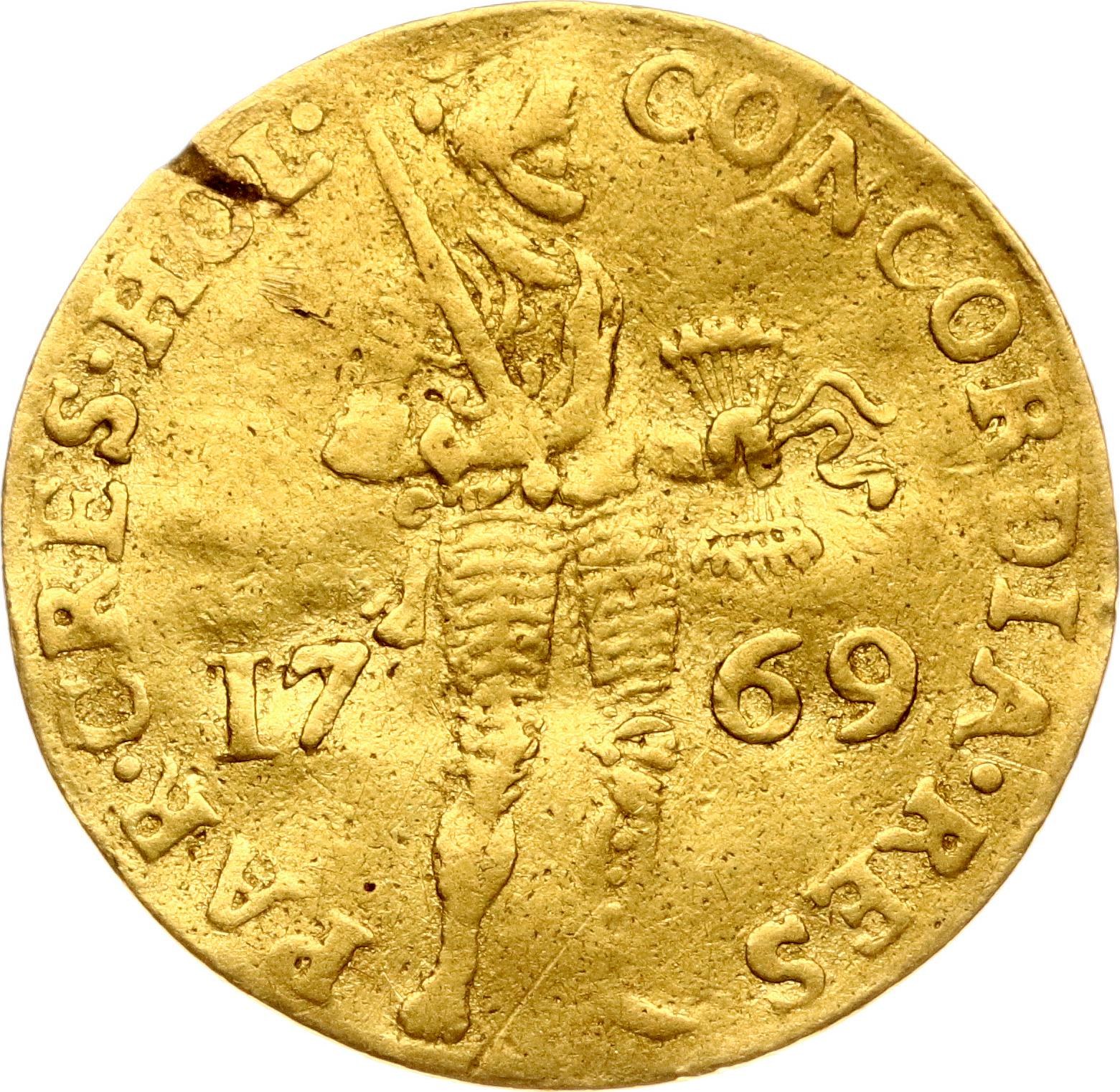 Netherlands, Holland. Ducat 1769. Gold 3.44 g. Fr 250, KM 12.3. Surface damage.