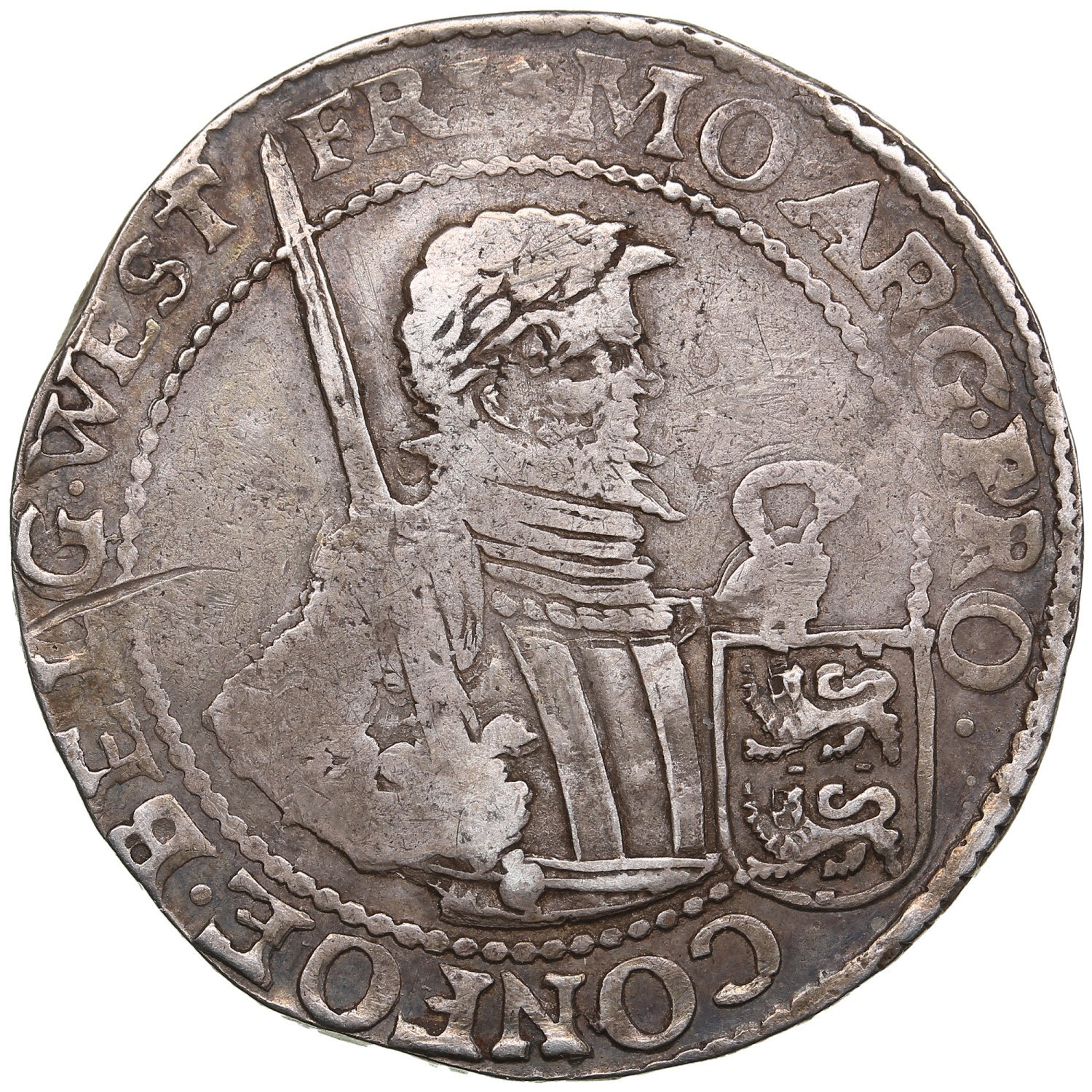 Obv.: Armored half-length figure to right, holding sword and provincial coat of arms; “*MO·ARG·PRO - CONFOE·BELG·WEST FRI”.